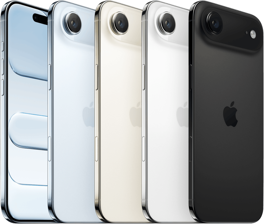 Disclaimers: (1)The display has rounded corners that follow a beautiful curved design, and these corners are within a standard rectangle. When measured as a standard rectangular shape, the screen is 6.55 inches (iPhone Air) diagonally. Actual viewable area is less. (2)Compared with the glass back of previous-generation iPhone. (3)Compared with previous-generation iPhone. (4)All battery claims depend on network configuration and many other factors; actual results will vary. Battery has limited recharge cycles and may eventually need to be replaced. Battery life and charge cycles vary by use and settings. (5)Some features may not be available in all countries or all areas. (6)Apple Intelligence is available in beta. Some features may not be available in all regions or languages. (7)Satellite features are included for free for two years with the activation of any iPhone 14 or later model. Connection and response times vary based on location, site conditions and other factors. Some satellite features require a carrier plan. Satellite connectivity is provided by Globalstar and its affiliates. (8)iPhone 17, iPhone 17 Pro and iPhone Air can detect a severe car crash and call for help. Requires a mobile network connection or Wi-Fi calling. (9)Wi-Fi 7 available in countries and regions where supported. (10)Data plan required. 5G is available in selected markets and through selected carriers. (11)iPhone Air models are activated with an eSIM. eSIM requires a carrier that supports eSIM and a carrier plan. See your carrier for details.