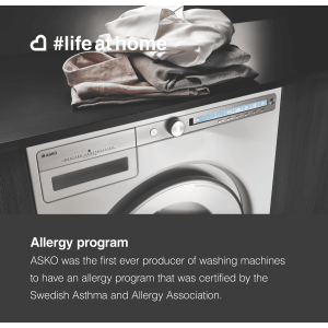 This ASKO Logic Front Load Washer has a 10kg capacity and 5 star energy and water ratings, so you can wash more in one go, while also saving water and electricity. The W4104C is a front load washer so it is extra gentle on your clothes, and has a 1400rpm spin speed to remove moisture and start the drying process before you’ve even finished washing. Despite the high spin speed, this washer is quiet and almost completely vibration-free thanks to ASKO’s Quattro Construction. Both the inner and outer drum sit on four shock absorbers to keep your washer stable and as still as possible. You’ll find the perfect program for your clothes with 21 programs to choose from including Hygiene and Allergy care cycles for specialised garment treatment. You can customise your wash further with ASKO’s wash modes. Washers in the Logic range, like the W4104C have 5 wash modes to add to most programs. Leave the mode as Normal, or select Green to use less energy and water, while Speed is perfect when you’re in a rush. Intense mode adds a bit of extra cleaning power for particularly dirty loads, while Allergy is ideal if you have sensitive skin. For improved hygiene, this ASKO washing machine has a Steel Seal door, so dirt won’t gather and stick like it does with rubber seals. The door also has a 307mm diameter to make loading and unloading easier. This ASKO 10kg Logic Front Load Washer is a great choice for doing lots of laundry in one go while keeping energy and water use low.