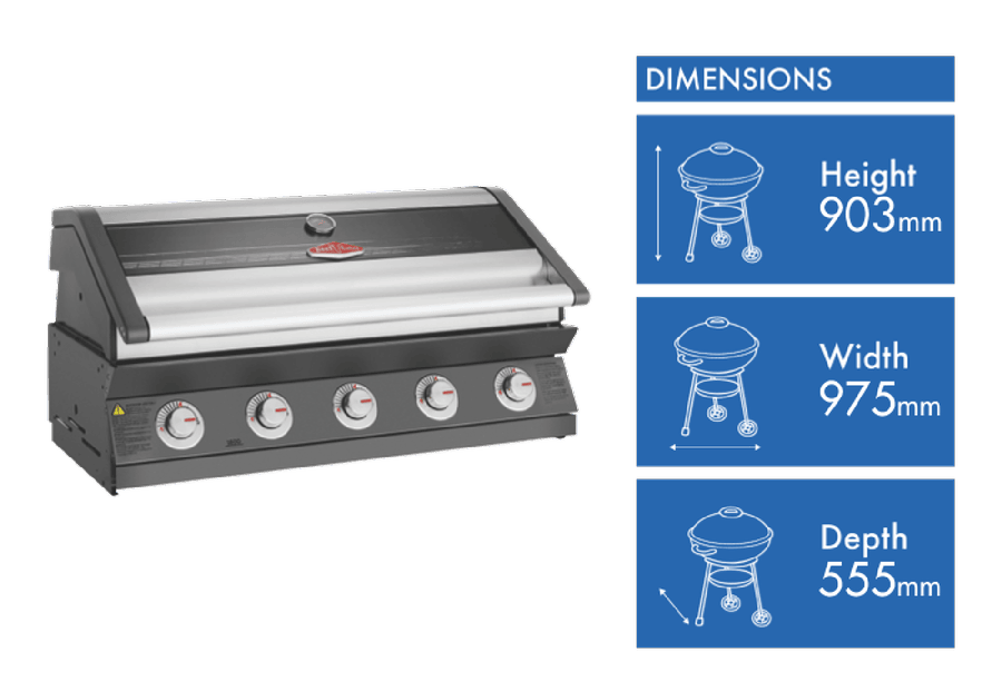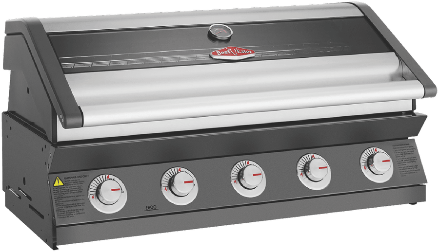 This BeefEater 1600 Series Dark 5 Burner Built In BBQ w/ Cast Iron Burners & Grills BBG1650DA is one of the most durable, flexible and efficient cooking systems available. Cast iron heats quickly, maintains consistency and lasts a very long time. With 17MJ of power in each burner, turning the heat up or down is precise and gives choice in what and how you cook it. Stainless steel vaporisers efficiently disperse the flames across the grill and plate surfaces whilst reducing flare ups. Cook up a feast for many for years to come on this spacious and durable cooktop. Made from cast iron, the cooking surface doesn’t chip and is rust resistant, holding its warmth evenly for the best cooking experience. Keep an eye on what’s cooking without lifting the lid using the built in temperature gauge and full width glass viewing window to check how those sausages or brisket are doing. The chrome wire elevated cooking rack keeps food warm or can be used as another cooking area. Start cooking quickly and easily with the quartz ignition system for first time, every time sparking up. Built to withstand high heat over time the burner box is built of high grade enamel. Fully seam welded throughout, moisture and grease don’t get into the gaps creating rust. Designed for an easy cleanup, the hotplate has raised sides preventing grease and oil over spilling, drawing it instead to the plate opening and into the front access catchment tray.