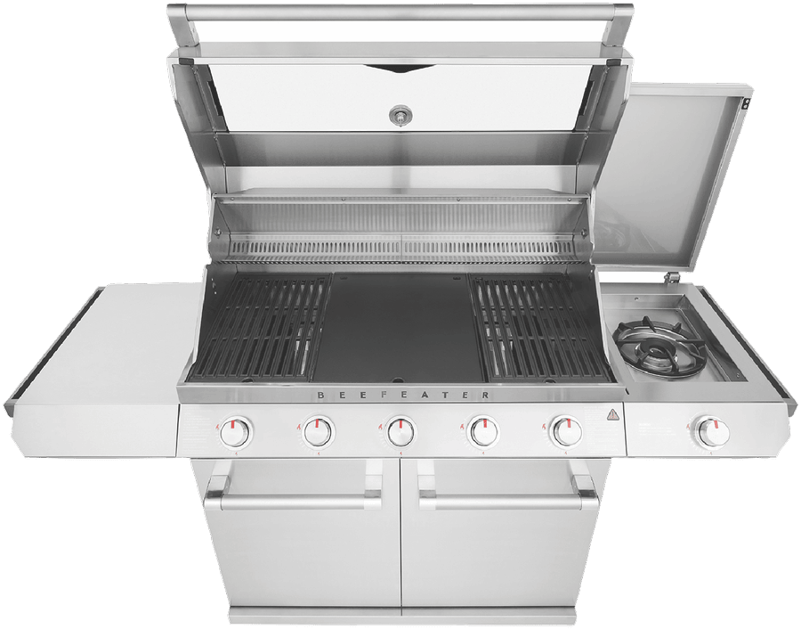 This freestanding BeefEater Signature 7000 Classic 5B BBQ gives you serious outdoor cooking power with its spacious 448000mm total cooking area. Perfect for family gatherings, the stainless steel construction offers durability you can count on season after season. The 304 grade stainless steel finish not only looks great but stands up to the elements, while lockable castors make it easy to position your BBQ exactly where you need it. With dimensions of 1284mm height, 1758mm width and 685mm depth, this substantial 132kg BBQ comes with a sturdy trolley for convenient storage and mobility. Backed by a 1-year manufacturer’s warranty, the BMG7652SA is built to deliver reliable outdoor cooking performance.