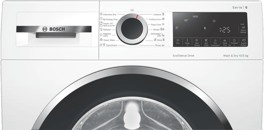 Take your laundry care to the next level with the Bosch 10kg-5kg Combo Washer Dryer. This front load washing machine delivers powerful cleaning and efficient drying in one space-saving unit. With a generous 10kg washing capacity, 1400rpm max spin speed, and 11 programs including Cottons, Easy Care, Wool, Delicate/Silk, Hygiene Care and more, this washer tackles loads fast while being gentle on fabrics. It features SpeedPerfect to intensify wash cycles for optimal stain removal, Easy Iron and Iron Assist options to reduce wrinkles, and Bosch’s AntiStain Removal system. Rated 4.5 stars for water efficiency, the Bosch washer is designed to conserve resources. When it’s time to dry, the integrated 5kg condenser dryer gets the job done using minimal energy thanks to its 3 star rating. Measuring 848mm in height, this washer dryer combo fits into tight spaces. With intuitive controls, quiet operation, and backed by a 2 year warranty, the Bosch 10kg-5kg Combo Washer Dryer delivers convenience, efficiency and German engineering. The manufacturer’s part number for this product is WNA254U1AU. See how this space-saving laundry solution can make your life easier.