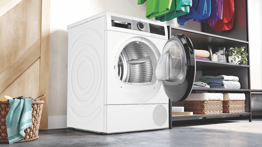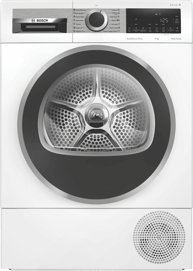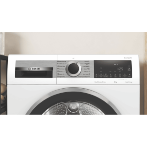 Make short work of laundry with the Bosch 8kg Heat Pump Dryer. With its large 8kg capacity, this clothes dryer lets you dry more in one load, saving you time spent doing laundry. The innovative heat pump technology gently dries clothes at lower temperatures, protecting fabrics while achieving an impressive 9 star energy rating for efficiency. Select from 10 drying programs like Cotton, Easy Care, and Delicates to customize cycles to your wardrobe. The special Bed Linen program utilizes the reversible drum action to thoroughly dry bulky linens. ActiveAir technology circulates air evenly for consistent drying, while the SelfCleaning Condenser prevents lint buildup inside the dryer. Load your clothes, select your preferred dryness level, and let the intelligent sensor take care of the rest for optimized results. With handy features like delay start, half load, and auto dry, this dryer takes the guesswork out of laundry day. The sleek white finish and LED display add style and modern appeal to any laundry room. Backed by Bosch’s 2 year warranty, the Bosch 8kg Heat Pump Dryer makes easy work of laundry so you can spend more time doing the things you love. The manufacturer’s part number for this product is WQG235D8AU. Learn more about the benefits this innovative clothes dryer can provide your household.