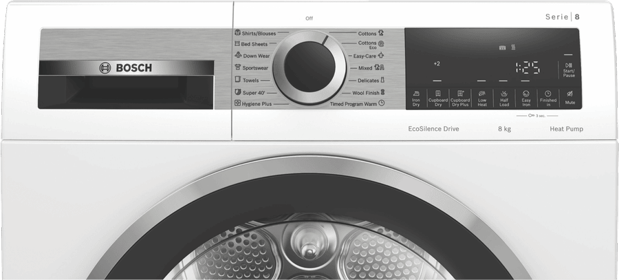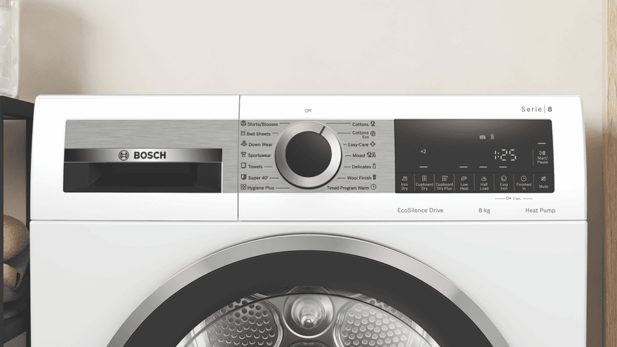 - Heat pump dryer with 8kg capacity