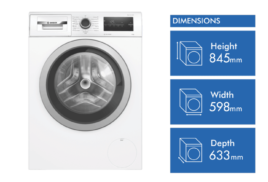 Tired of laundry day hassles? The Bosch Series 4 – 9kg front load washer (WAN24126AU) is here to help. With 11 wash programs like Cottons, Easy Care, and Delicate/Silk, you can tackle any load. Plus, handy options like Delayed Start and SpeedPerfect let you wash on your schedule. This washer’s 4.5-star WELS rating means it uses just 78 litres per cycle, while the 5-star energy rating keeps bills in check. Anti-flood protection and a child lock give you peace of mind, and the 1200rpm max spin speed ensures clothes come out drier. And with a 2-year warranty, you can count on this Bosch to keep your clothes clean and fresh.