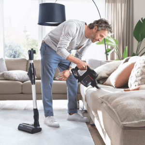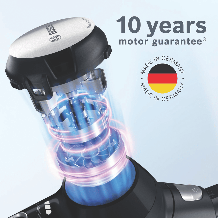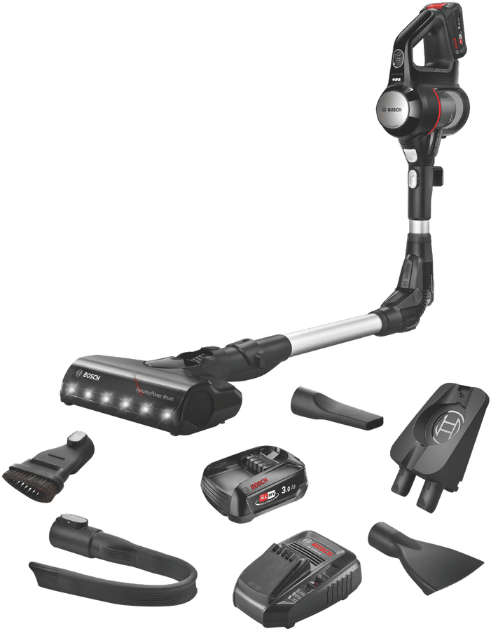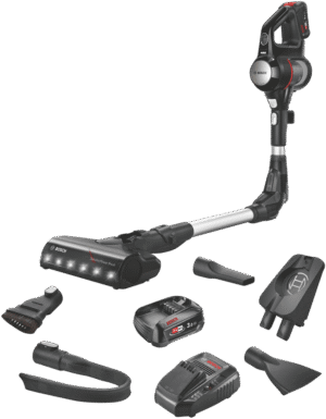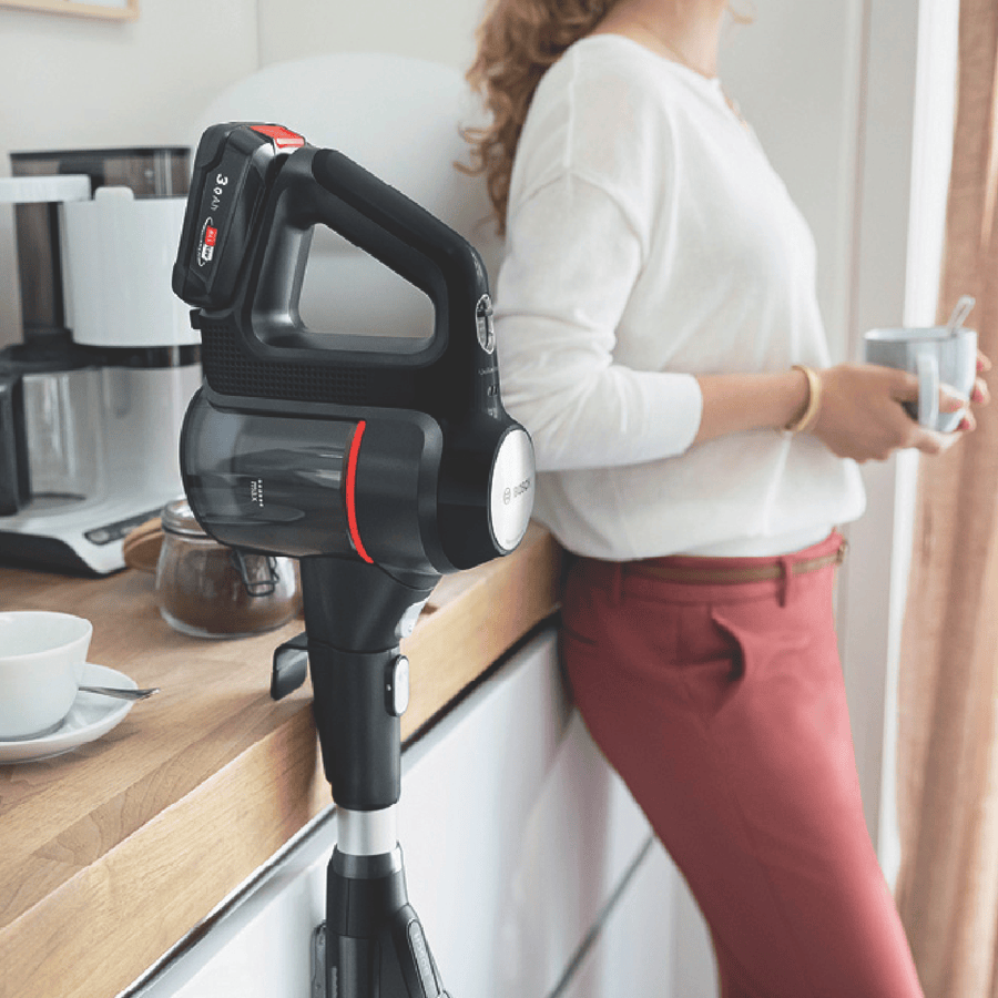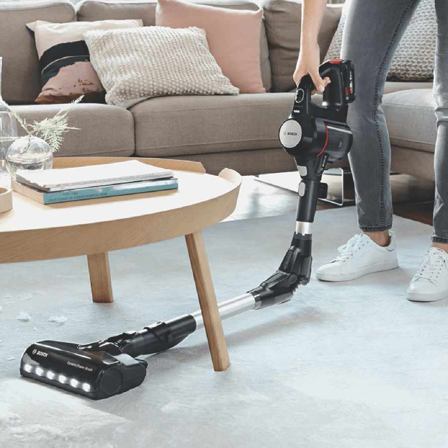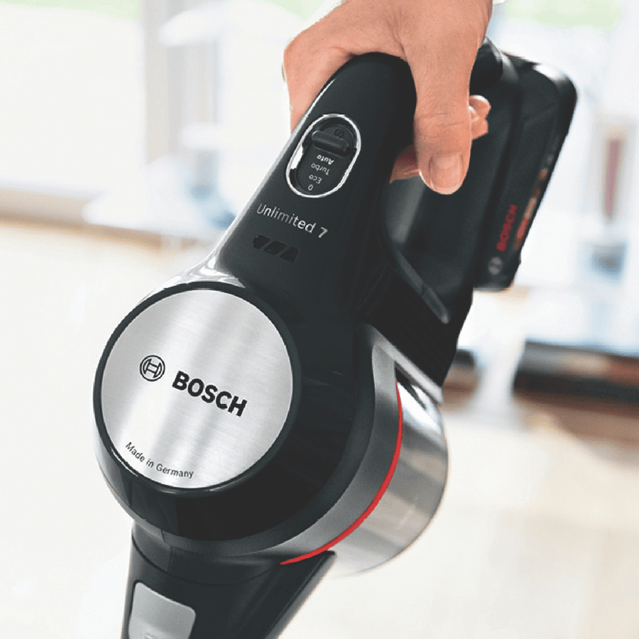 The new Unlimited 7 features an innovative 90° bendable tube for easy and ergonomic cleaning under furniture. Other convenient functions include the LED floor lights, the Nozzle Foot Release for an effortless switch to overhead cleaning and the Easy Parking Clip. Enjoy more versatility! The convenient Flex Tube makes it possible to reach places under low furniture effortlessly, the Easy Parking Clip lets you securely hold the vacuum in place during breaks, and the Quick Stand allows flexible cleaning with the handheld while the nozzle and tube stand by themselves. With the Nozzle Foot Release you can detach the nozzle from the tube without bending over to easily switch to spot cleaning with the practical tube. This makes the Unlimited 7 perfect for cleaning all types of floors and surfaces, as well as hard-to-reach areas. With the powerful and enduring 3.0 Ah Power For All battery from Bosch, even demanding cleaning tasks can be mastered effortlessly. The lithium-ion battery is rechargeable, exchangeable and protected against overheating, overcharging, self-discharge and memory effect. In addition, the battery offers up to 40 minutes runtime(7), for each battery ensuring powerful performance and long runtimes. Enjoy optimal cleaning results on all floors and surfaces and even in the darkest places. With the powerful motorized brush, you can achieve dust pickup of up to 99.9%(4). Thanks to the powerful built-in LED lights, you can spot and remove dirt and dust even in hard-to-see places like behind furniture or in dark corners. So you can feel comfortable in a clean home in no time. Save time and energy thanks to the Quick Stand function. Switch easily and effortlessly from floor cleaning with the vacuum cleaner to mid-level cleaning with the handheld vacuum cleaner. While cleaning with the handheld, the nozzle and tube simply stand by themselves. You don’t have to put the vacuum cleaner on the floor or return it to the docking station. Afterwards, you simply put the handheld back into the tube and continue cleaning the floor. Different vacuuming tasks require different modes. The vacuum cleaner provides a control interface with 3 power modes for every challenge. “Turbo” boosts performance for difficult tasks by providing as much performance as a corded vacuum cleaner.(2) The intelligent “Auto” mode adjusts performance and runtime depending on the floor and surface – whether carpet or hard floor. And “Eco” provides extra-long, optimal runtime for everyday cleaning tasks. Disclaimers: (4)Dust pickup measured in Turbo mode on hard floors with crevices. Tested according to EN 60312-1:2017.(3)Terms of guarantee on https://www.bosch-home.com.au/metapages/warranty(4)Dust pickup measured in Turbo mode on hard floors with crevices. Tested according to EN 60312-1:2017.(5)Compared to our previous Unlimited Serie 6 BCS61113AU. Tested according to EN 60312-1:2017.(7)Compared to the 2.5Ah 18V Power For All battery in Eco mode without electrical nozzle from our previous Unlimited Serie 6 BCS6111AU. Tested according to EN IEC 62885-4:2020.(8)Measured in Eco mode internally based on standard EN 60312-1:2017 section 5.1 – 5.3.(0)Tested according to EN 60312-1:2017.
