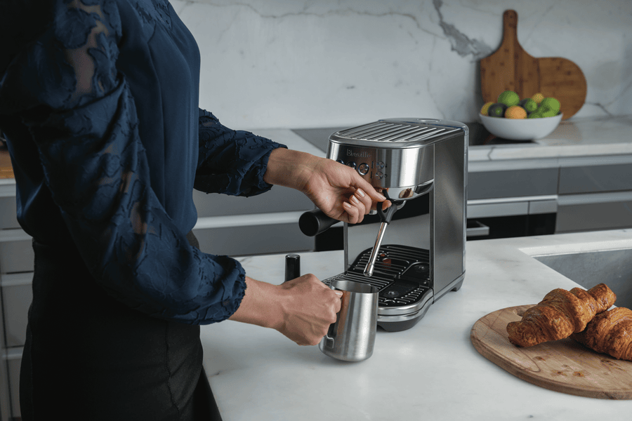 Create cafe quality cappuccinos, caffe lattes, or long or short blacks from the comfort of home without taking up much bench space with this compact Breville Bambino Plus espresso machine. The precise Bambino Plus 19-gram dose capacity and 54mm porta-filter ensures full bodied cafe quality flavour with just the right amount of ground coffee for a balanced espresso, while the low-pressure pre-infusion draws out flavours evenly during the extraction phase for a perfectly balanced tasting cup of coffee. Plus, with precise PID digital temperature control, water is delivered at the precise temperature required for optimal espresso extraction. Use the automatic steam wand and included milk jug to texture your way to barista quality micro-foam for a cappuccino just like at your local cafe. The Breville BES500BSS4JAN1 offers a super-fast 3 second heat up time thanks to the innovative ThermoJet heating system that reaches optimum extraction temperature so you don’t have to wait. Use freshly ground coffee from your local cafe or roaster, or you can grind your own roasted beans using a coffee grinder (sold separately). By combining all the elements needed for a deliciously balanced brew, any day is off to a great start with your favourite caffeinated beverage at home with Breville’s Bambino Plus.