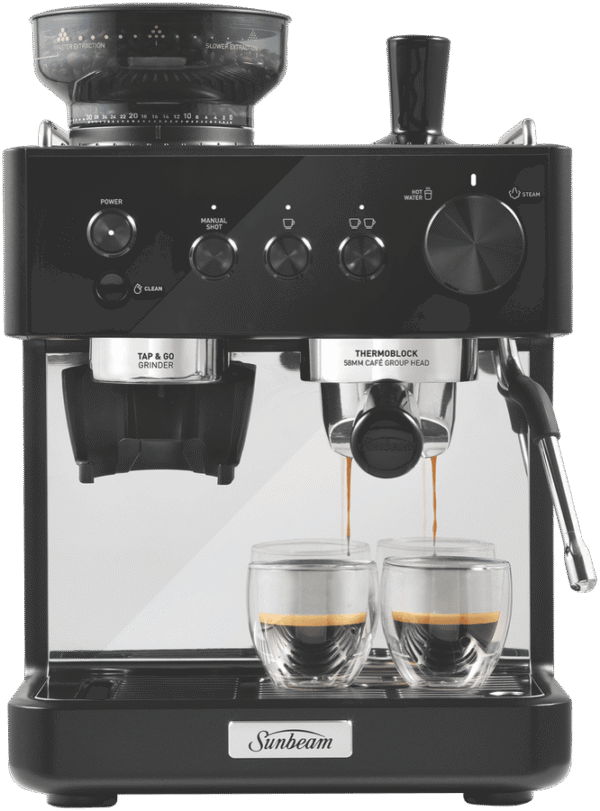 - Thermocoil heating with preinfusion for even extraction