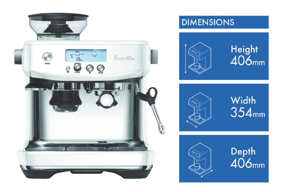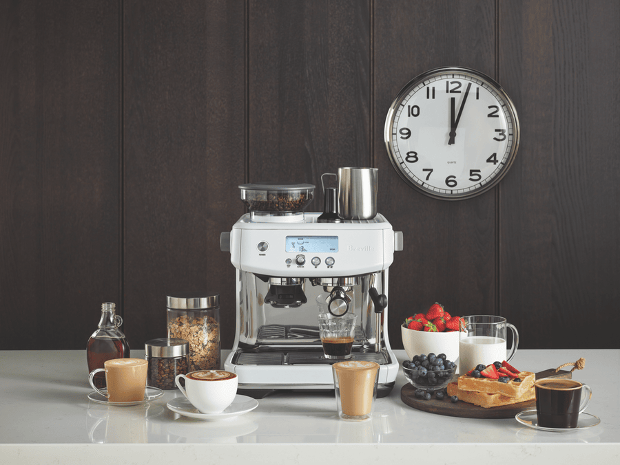 Transform your inner barista at home with the Breville The Barista Pro Sea Salt manual espresso machine. With its sleek brushed stainless steel exterior and sea salt finish, this coffee machine brings café quality right to your countertop. The powerful 15 bar Italian pump delivers optimal espresso extraction, while the integrated conical burr grinder with dose control allows you to freshly grind beans for each cup. With the Barista Pro, you’ll enjoy barista-style features like a manual steam wand that heats up in just 3 seconds for effortless microfoam milk texturing. The intuitive LCD interface provides one and two cup volumetric control, and hands-free auto dosing ensures consistent results every time. Additional highlights like the instant steam wand, 54mm stainless steel portafilter, and dedicated hot water outlet take your home brewing to the next level. Whether you prefer short blacks or long lattes, the Barista Pro gives you complete command over every cup. Bring the vibrant flavors and aromas of a coffeehouse right into your kitchen. The manufacturer’s part number for this product is BES878SST4JAN1. Learn more about the Barista Pro’s capabilities today.