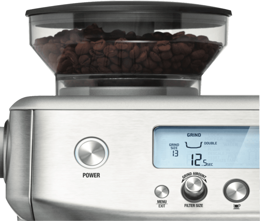- Stainless steel conical burr grinder with adjustable grind