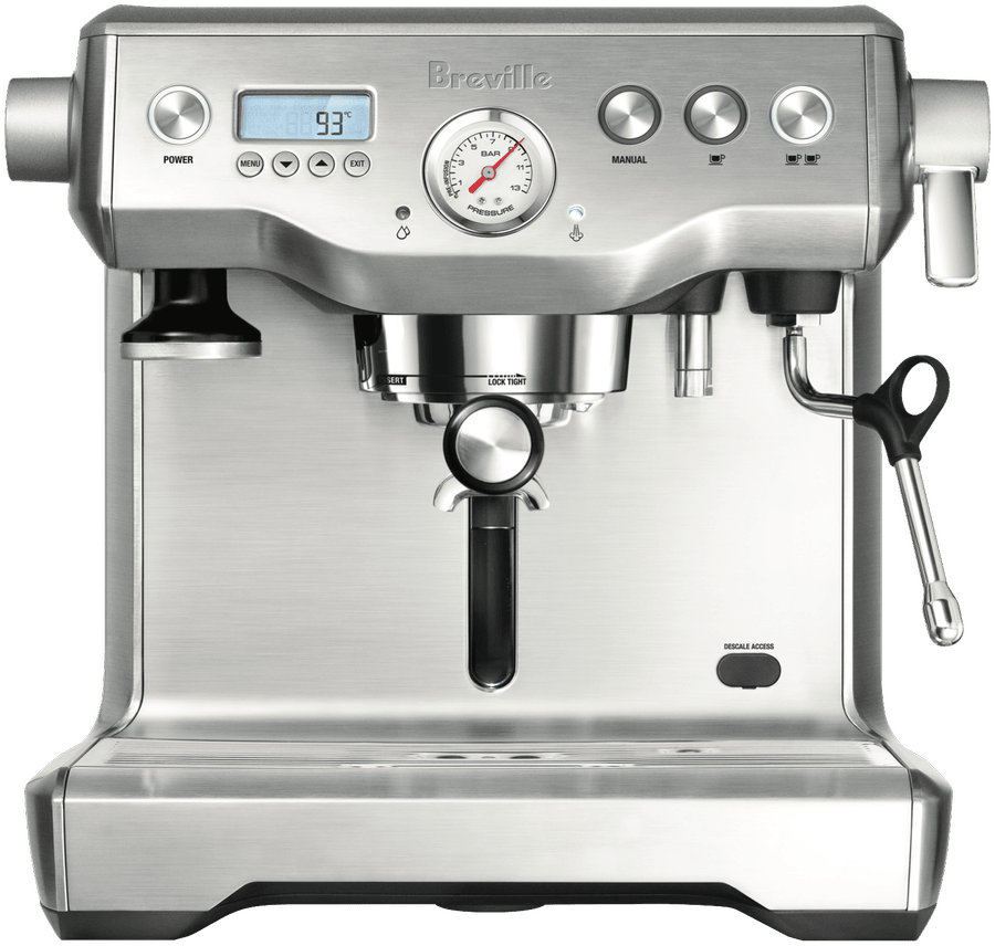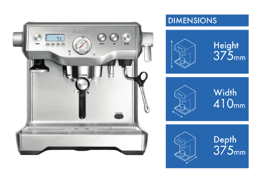 Be your own barista thanks to Breville’s the Dual Boiler Espresso Machine BES920BSS. Dual boilers mean you can extract your espresso and move straight onto texturing and steaming milk, without having to wait for the boiler to change temperature. You can extract with precision to create your ultimate cup of coffee. It has a 15 bar Italian pump and adjustable temperature control for extraction and steam so you can create the perfect conditions for your fresh coffee grinds. Plus, pre-infusion helps to create a silky smooth espresso. There are two programmable cup sizes, or you can use the manual option if you’re looking for a change from your standard coffee routine. Top your espresso with smooth milk to create lattes, flat whites, cappuccinos and more with the help of this Breville coffee machine’s steam wand. You won’t be waiting long for it to heat up in the morning – just program the Auto Start Option so your machine is ready as soon as you jump out of bed for an early morning caffeine hit. It comes with an integrated and removable tamper for a clean counter top, as well as a stainless steel frothing jug and filter baskets. Create quality coffee within the comfort of home with Breville’s the Dual Boiler Espresso Machine.