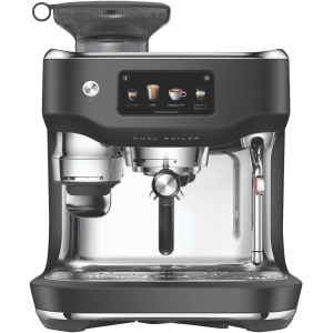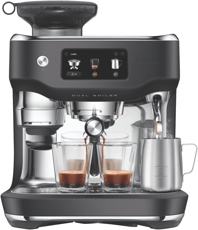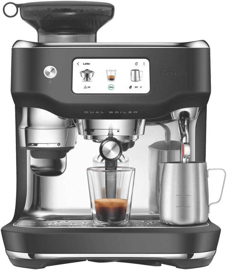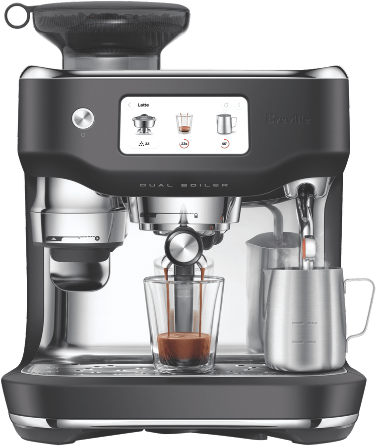 Make barista-quality coffee at home with The Oracle Dual Boiler Coffee Machine in elegant Black Truffle. This manual coffee machine features a powerful 19 Bar pump and triple heating system with PID temperature control, allowing you to extract the perfect espresso while simultaneously steaming milk. The 5.7-inch touchscreen gives you access to 15 preset coffee recipes and 8 customisable drinks, while the built-in grinder with 45 settings ensures the perfect grind every time. With a generous 2.3L water tank and 340g bean hopper, you’ll have plenty of capacity for entertaining. Comes with a 2-year warranty. Model BES995BTR4IAN1.