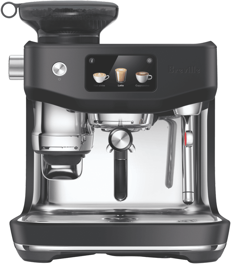 - Integrated grinder auto grinds, doses and tamps 22 grams