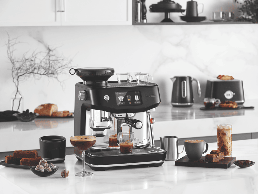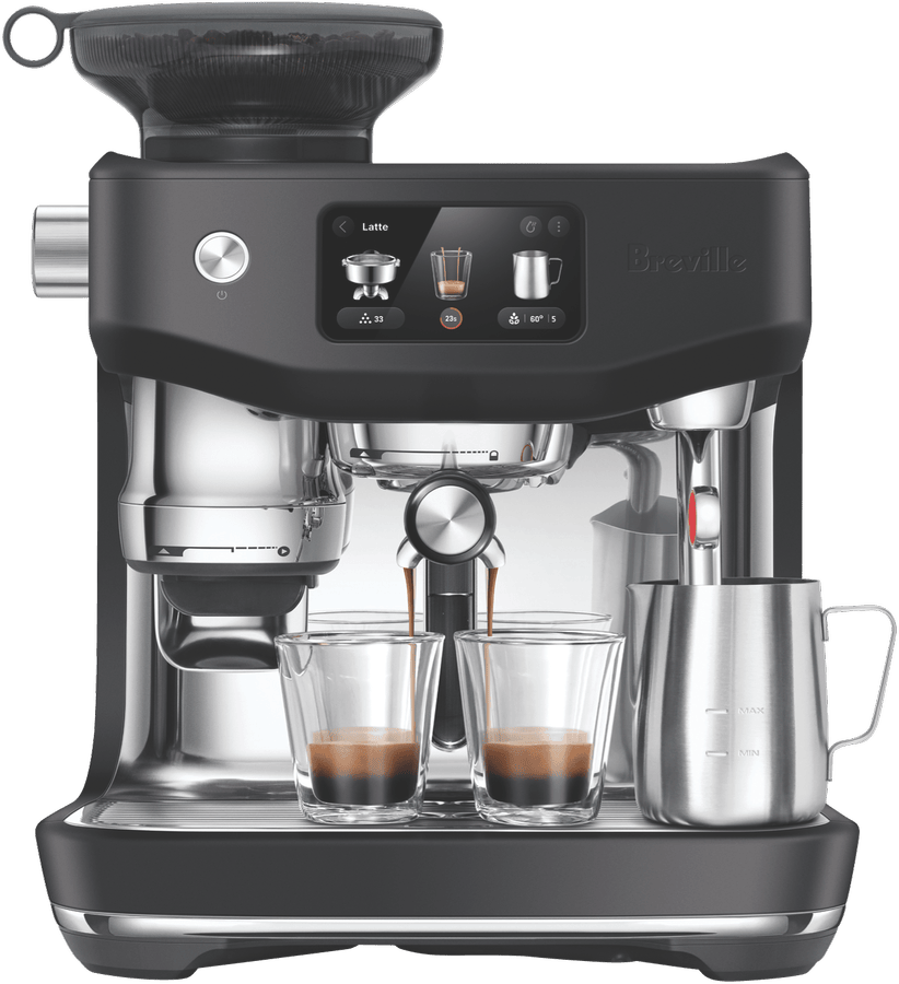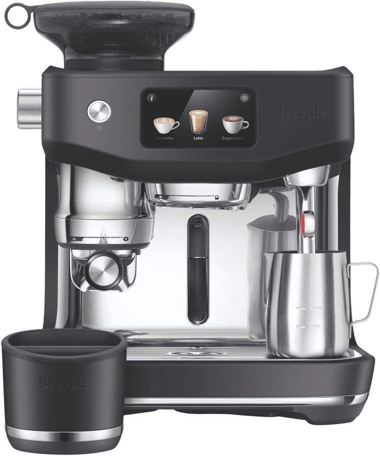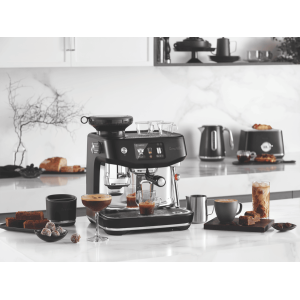 Bring barista-quality coffee home with the Breville Oracle Jet Coffee Machine in sleek Black Truffle. This automatic coffee machine packs a punch with its 1600-watt power and 9 bar pump pressure, delivering your favourite brews in just 3 seconds thanks to the ThermoJet heating system. The generous 2.3L water tank and integrated grinder make crafting everything from flat whites to cold brews a breeze, with 10 preset options at your fingertips. The brushed stainless steel construction and PID digital temperature control ensure consistent, delicious results every time. Plus, the auto shut-off feature and included accessories like the 58mm portafilter and 480ml milk jug make this machine a joy to use. Experience cafe-quality coffee without leaving your kitchen with the Breville Oracle Jet BES985BTR4IAN1, backed by a 2-year manufacturer’s warranty.