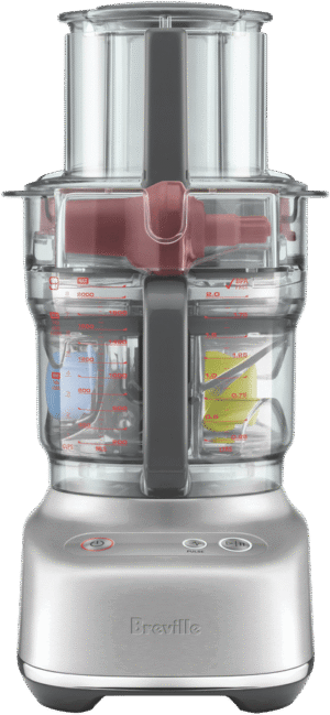 Revolutionize your kitchen prep with the Breville The Paradice 9 Brushed Stainless Steel Food Processor. This versatile kitchen appliance features a 605 watt brushless induction motor and 9 cup BPA-free bowl to quickly and easily slice, dice, shred, knead and puree ingredients for all your favorite recipes. The wide 120mm feed chute allows you to process larger items with less pre-chopping. It includes multiple blades and discs like the reversible shredder, adjustable slicer, dough blade and S-blade to accommodate all your processing needs. With the integrated storage caddy, colour coded accessories and dishwasher safe parts, using and storing this food processor is a breeze. Prepare quick homemade meals and snacks for the whole family with the multifunctional Breville The Paradice 9. The manufacturer’s part number for this product is BFP638BSS2IAN1. Discover how convenient food prep can be with the Breville Paradice 9 Food Processor.