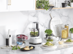 - Food processor with 9 cup bowl capacity