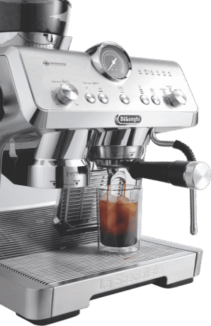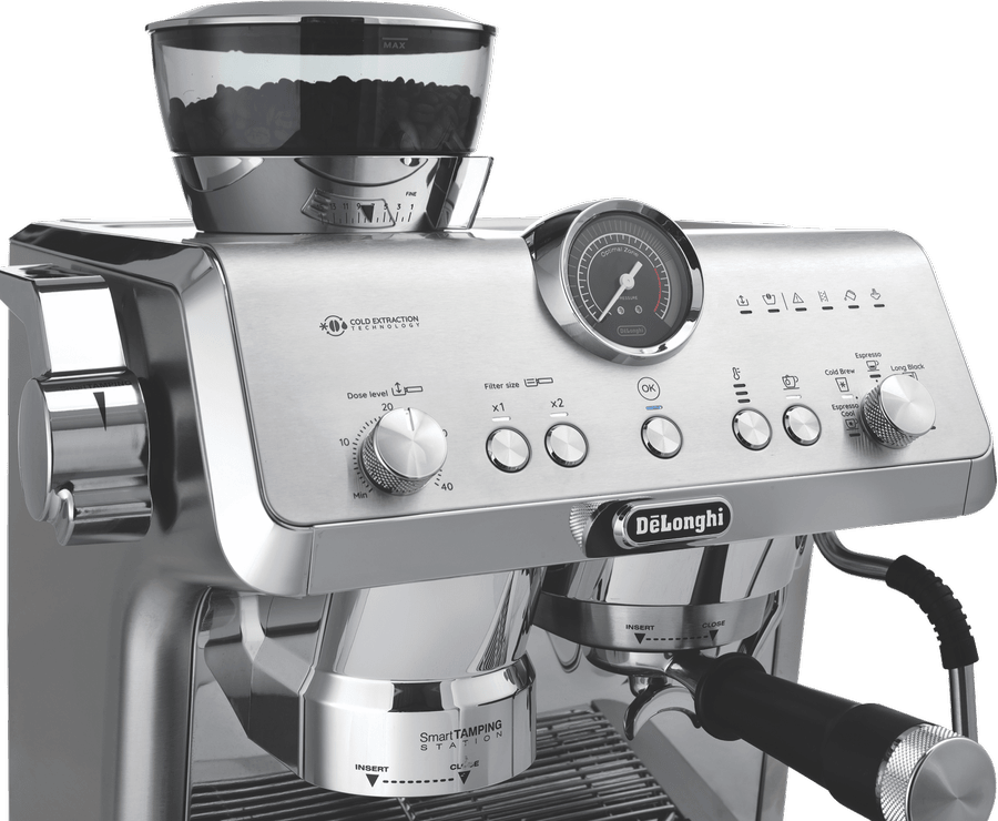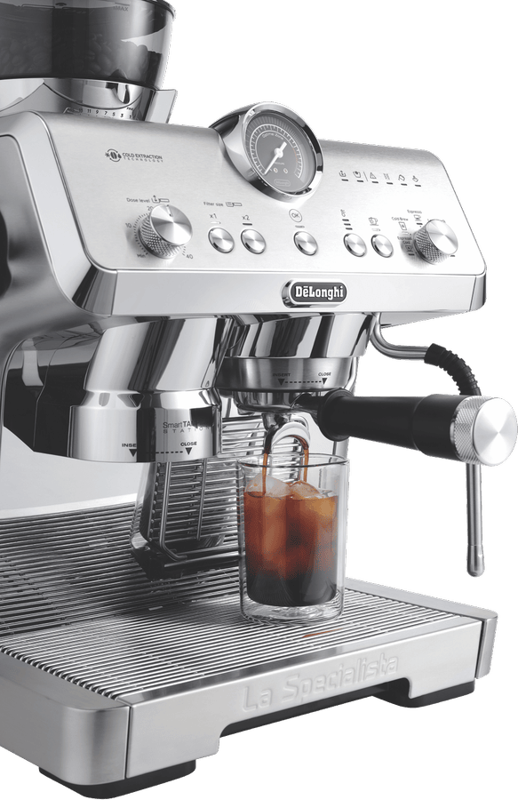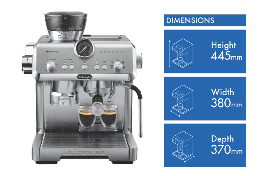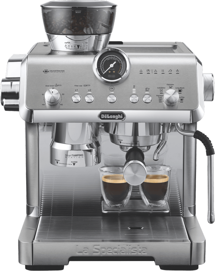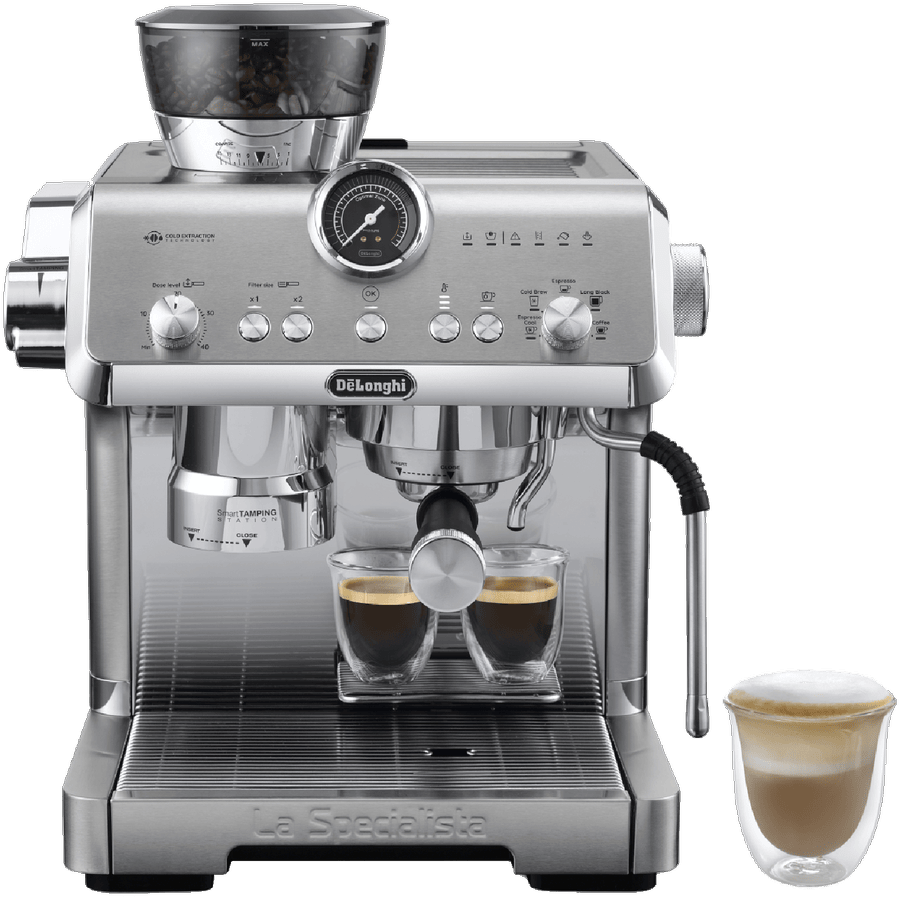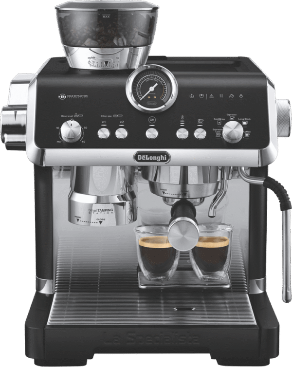 Elevate your coffee experience with the DeLonghi La Specialista Opera Manual Coffee Machine. This premium espresso machine boasts a precious full metal and chromed design, delivering exceptional performance and style. With 19 bar pump pressure and an advanced Thermoblock heating system, you can enjoy barista-quality coffee at home. The removable 2 litre water tank and 250g beans container provide convenience, while the My LatteArt steam wand allows you to create stunning latte art. Customize your grind with 15 settings and sensor grinding technology, ensuring optimal extraction. The smart tamping station and active temperature control with PID maintain consistent water temperature throughout brewing. Explore cold brew and espresso options with the cold extraction technology. Measuring 445mm high (with beans container), 370mm deep, and 380mm wide, this 13.2kg machine is built to last. The manufacturer’s part number for this product is EC9555M. Experience the art of coffee making with the DeLonghi La Specialista Opera Manual Coffee Machine, backed by a 2 year manufacturer’s warranty.