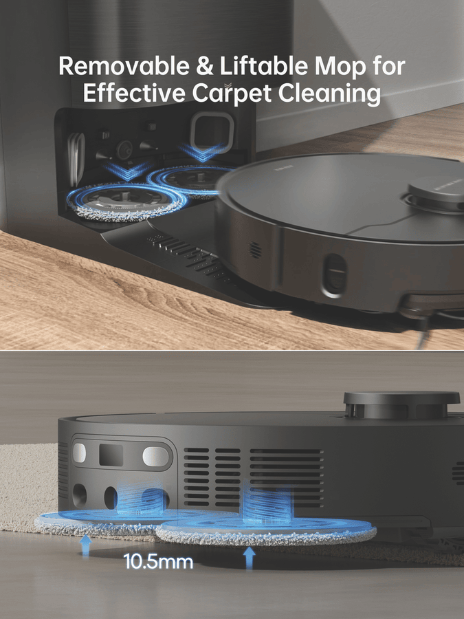 - Dual rotary mops, mop extend, 70°C hot wash, Alexa and Google Assistant