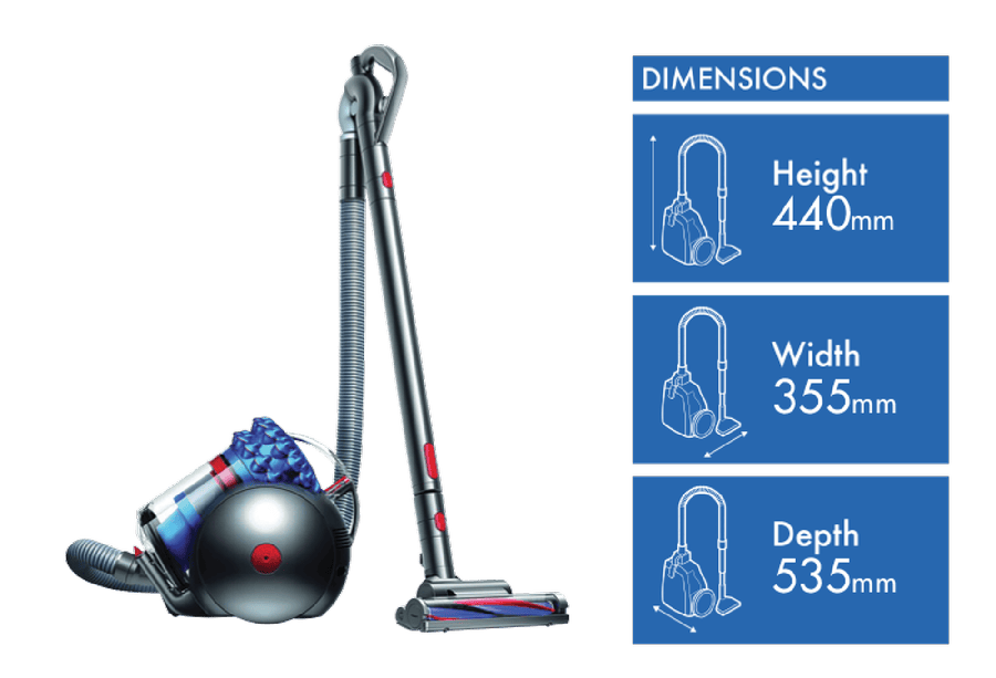 The Dyson Big Ball Absolute Bagless Vacuum (447178-01) is engineered to be suitable fore all floor types, It self rights when toppled, it has 2 Tier Radial(TM) cyclones for powerful suction. Hygienically ejects the dirt – Drive out trapped dust and debris with just the push of a button. There’s no need to touch the dirt. Large capacity bin – Captures more dirt and debris for fewer cleaning interruptions. Longer wand reaches awkward hard to reach areas, it extends up to 1250mm. The wand’s handle rotates in three directions, allowing full 360° articulation for greater control