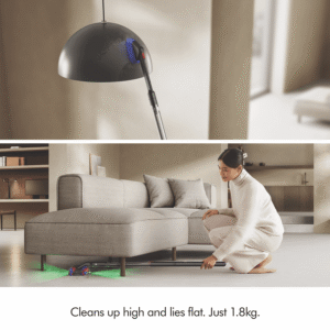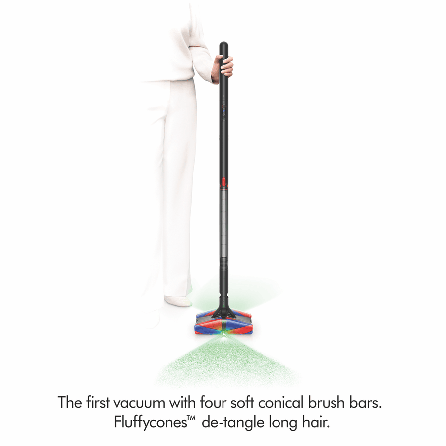 The Dyson PencilVac Fluffycones Cordless Vacuum 492714-01 has the revolutionary Fluffycones cleaner head with four conical brush bars to lift and strip hair from surfaces, so it can be easily sucked up with no tangling. Cones clean right to the edge where other shapes can’t. The Pencil Vac illuminates microscopic dust both forwards and backwards on hard floors in all directions so nothing is missed. With a 38mm handle that fits into the hand, the new slim format precisely controls a cleaner head that spins on the spot, making it easier to clean all around home. Up to 30 minutes of fade-free suction(1) is available with the advanced and swappable four-cell lithium-ion battery. It captures 99.99% of microscopic particles(2) with a fully sealed filtration system capturing dust and allergens as small as 0.3 microns(2). Dyson’s new bin emptying system reduces dust clouds by pushing compressed dust deep into the bin for hygienic emptying. The PencilVac Fluffycones connects to the MyDyson app for additional settings and maintenance guidance. Disclaimers: (1) Applies in Eco mode. Actual run time will vary based on power mode, floor type and attachments used. (2) In boost mode tested to ASTM F1977 externally at SGS America in 2024.