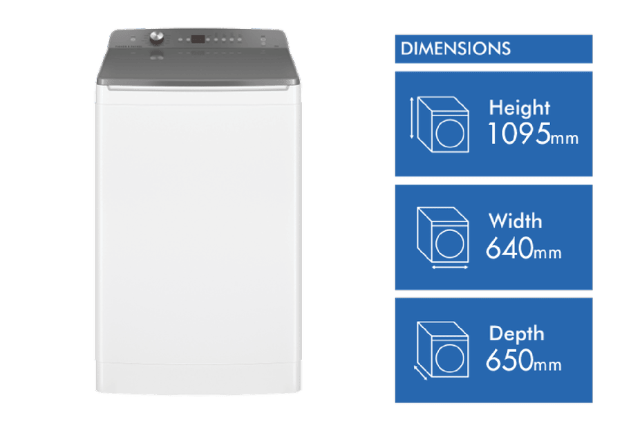 The Fisher & Paykel 10kg top load washer is the perfect laundry solution for busy families. This brilliant top loader can wash up to 10kg of laundry in one load, saving you time on wash days. With a range of 14 washing programs including Bulky, Cottons, Delicate, Drum Clean and Hygiene, this machine can handle any fabric type with ease. The Eco wash function allows you to cut water and energy use while still getting great results. At 4.5 stars for energy and 4 stars for water (102L per wash), the Fisher & Paykel is an efficient appliance that won’t cost the earth to run. The intuitive SmartTouch control dial makes it simple to select the right cycle, while handy features like Delay Start, Extra Rinse and Soak give you extra flexibility. Inside, the large 10kg drum features a pillow design that gently cradles clothes during the wash. A max spin speed of 800rpm means shorter drying times afterwards. This white top loading washing machine also features a soft close lid and self-levelling feet for stability. With a 2 year manufacturer’s warranty, you can trust that the Fisher & Paykel 10kg washer is built to last. Give your laundry a thorough clean while saving time, water and energy with this feature-packed top loader. The manufacturer’s part number for this product is WL1064G1. Learn more about the Fisher & Paykel 10kg top load washer today.