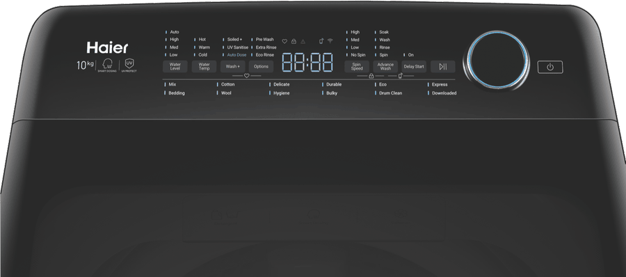 Give your laundry routine an efficient upgrade with the Haier 10kg Top Load Washer. Engineered for convenience, this top loader features a generous 10kg capacity, perfect for handling large loads with ease. The white finish lends a clean, classic look suitable for any laundry space. With a quick 680rpm max spin speed, this Haier washer removes more moisture so clothes dry faster. An Eco program setting helps conserve precious resources. Certified with a 4 star WELS water rating and 4.5 star energy rating, this washer is your eco-friendly laundry ally. 12 versatile wash programs handle everything from bulky items and bedding to delicates or wool with care. Adjustable rinse options give you custom control over the wash process. Load sensing, auto water levels and delay start provide added convenience. The tempered glass lid and stainless steel drum offer durability. A child lock ensures safe operation. Equipped with Haier’s UV Protect to help keep whites bright, this washer also features auto balance correction and auto dosing functions. With soft close lid, progress indicator and time to go display, laundry day is made simpler. Bring home convenience and efficiency with the Haier 10kg Top Load Washer. The manufacturer’s part number for this product is HWT10AD1.