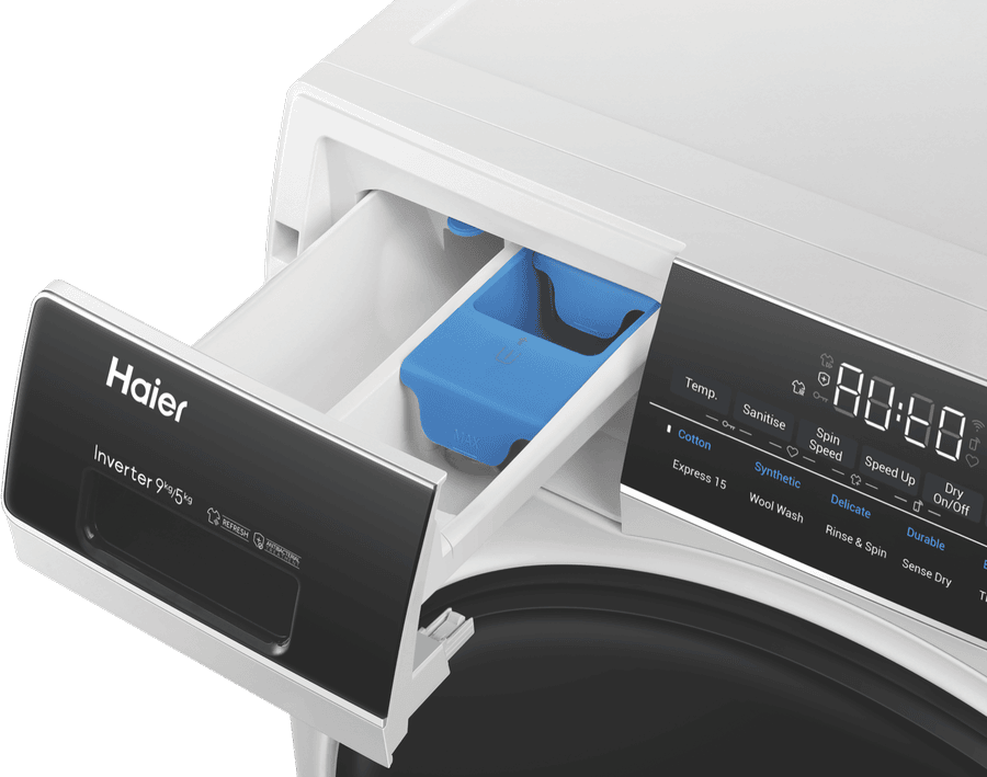 Tackle laundry day with ease using the Haier 9kg-5kg Combo Washer Dryer. This innovative 2-in-1 machine combines a large 9kg washing capacity with a 5kg drying capacity, providing the ultimate laundry solution for busy households. The Haier Combo Washer Dryer makes quick work of dirty clothes thanks to its range of 12 washing programs including Bulky, Cotton, Delicate, Express 15, Refresh, Sanitise wash option and more. It also features 6 continuous wash-dry cycles so you can easily wash and dry a full load of laundry without any hassle. With smart features like Wi-Fi connectivity, Auto balancing drum, Child lock, Delay start function and LED display, operating this appliance is a breeze. The Anti-Bacteria Treatment in the gasket ensures your clothes come out hygienically clean while the Stainless steel drum is gentle on fabrics. Adjustable feet allow you to level the machine on any surface.Boasting an energy rating of 5 stars and a 4.5 star WELS water rating, the Haier Combo Washer Dryer is designed to save you energy and water. Enjoy the convenience of washing and drying in one unit while being kind to the environment. The manufacturer’s part number for this product is HWD9050AN1. Bring home the Haier 9kg-5kg Combo Washer Dryer for the ultimate laundry solution today.