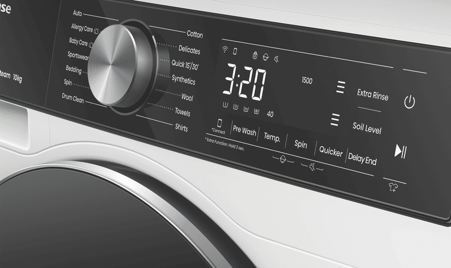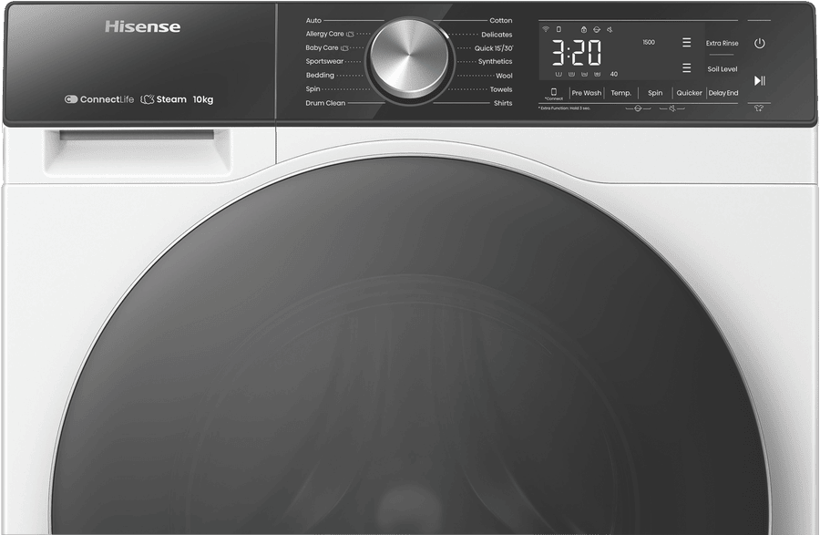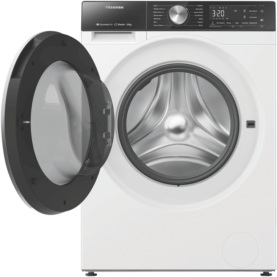 Enjoy effortless and efficient laundry days with the Hisense 10kg Front Load Washer. This white front loader boasts a generous 10kg capacity, perfect for handling multiple loads of washing for medium to large households. The powerful 1500rpm spin speed helps remove excess water from your clothes, reducing drying time. With a 4.5 star WELS water rating and 5 star energy rating, you can save water and energy. The Hisense Washer features 14 versatile wash programs to care for everything from regular cottons to woollens, activewear, baby clothes and more. The Auto Wash function intelligently senses the optimal wash cycle, while Steam keeps clothes fresh and reduces allergens. Delay End lets you schedule wash cycles up to 24 hours in advance for added convenience. Additional features like Pure Jet wash system and Hygiene Guard provide a thorough clean, while the Smart Wizard takes the guesswork out of settings. With a matching Hisense dryer available, it’s easy to create a complete laundry solution. Backed by a 3 year manufacturer’s warranty for peace of mind. The manufacturer’s part number for this product is HWFS1015E.Bring home the Hisense 10kg Front Load Washer for an effortless laundry experience.