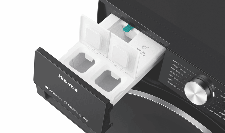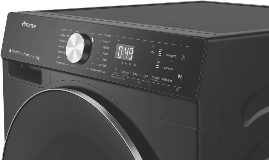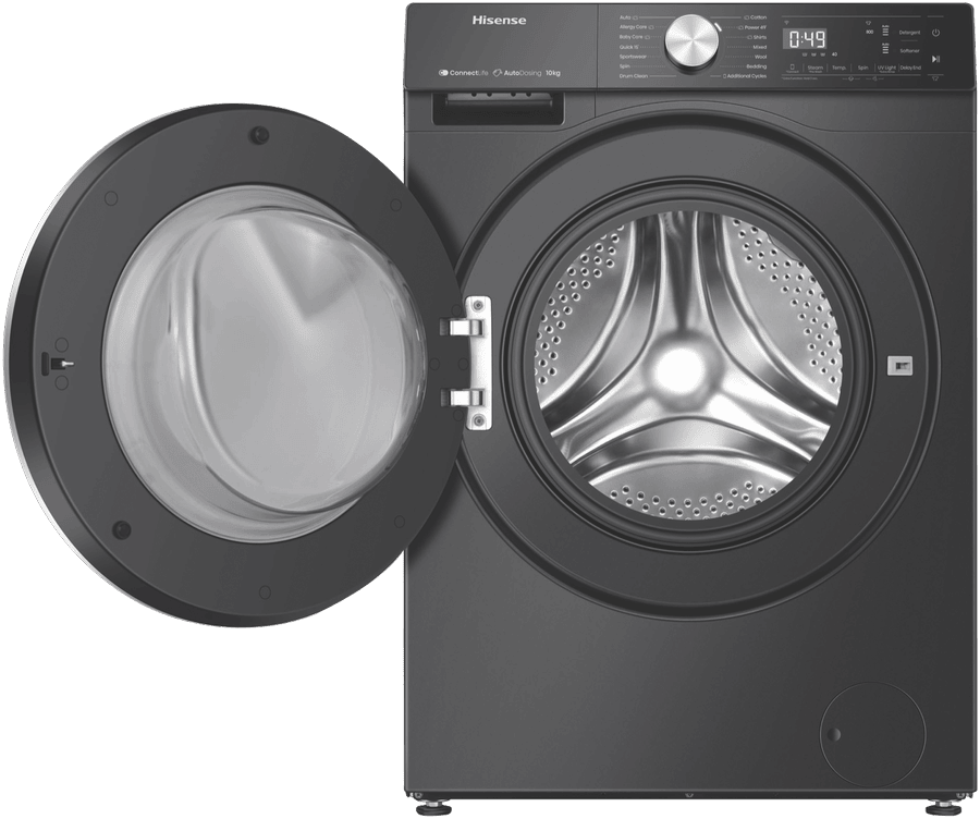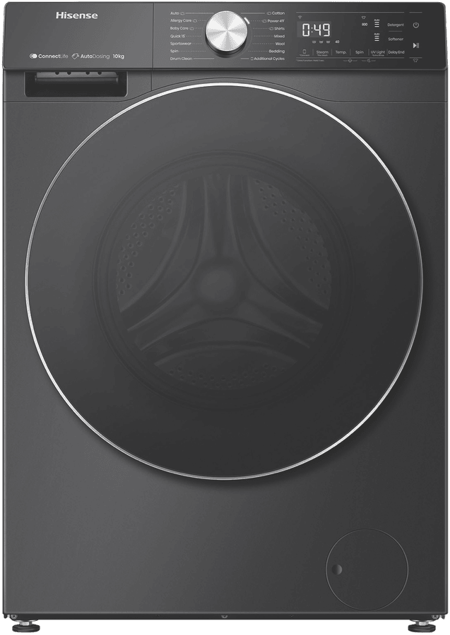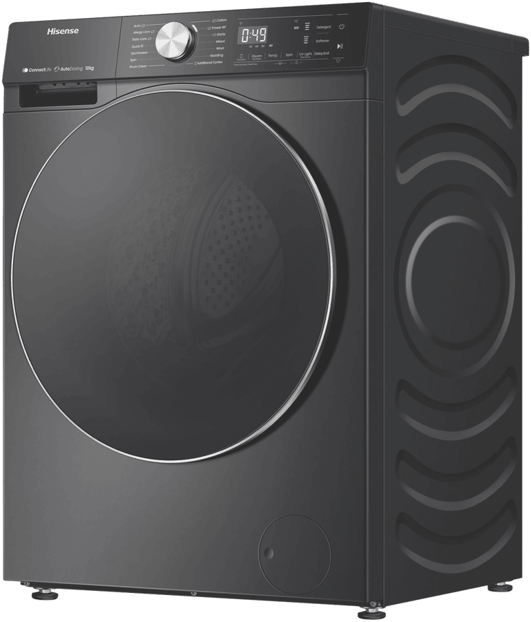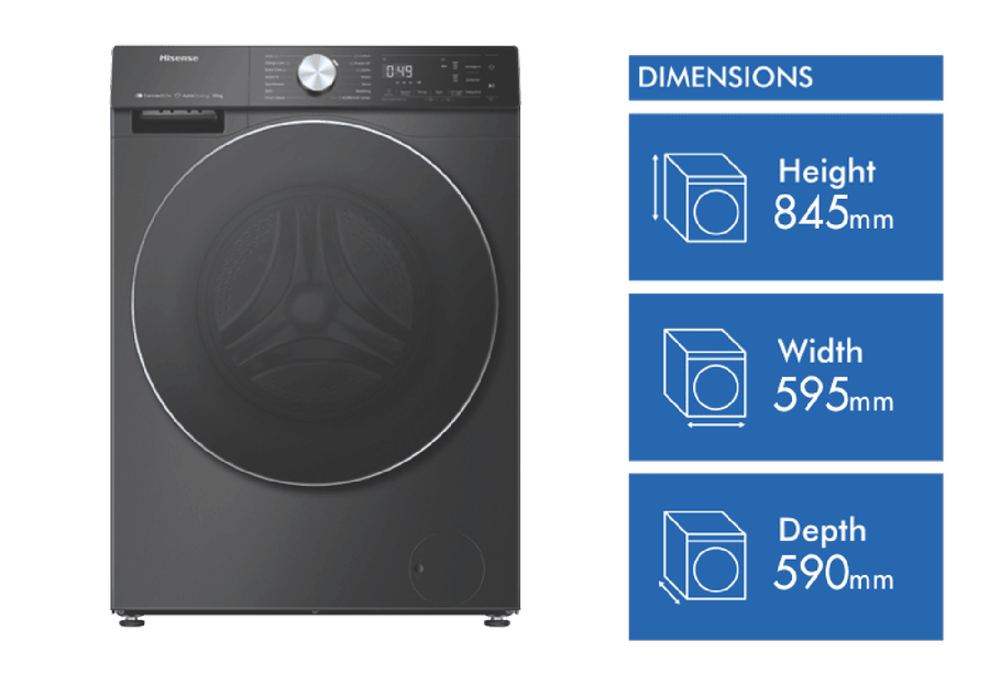 Transform your laundry day with the powerful performance and stylish design of the Hisense 10kg Front Load Washer. This charcoal black front loader packs an impressive 10kg load capacity and 1500rpm maximum spin speed to tackle heavy laundry loads with ease. The intuitive control panel and 13+6 washing programs, including Allergy Care, Baby Care, Sportswear and more, make it simple to achieve optimised cleaning results for all fabric types. Notable features include Steam Wash to penetrate deep into fabric fibers for the ultimate clean, Variable Water Temperature and Spin Speed to customise cycles, and auto dosing for effortless detergent dispensing. With an exceptional Energy Rating of 5 stars and a 4.5 star WELS water rating, you can enjoy energy and water efficient washing. The quiet wash system maintains a low decibel rating for unobtrusive operation. Matching perfectly with the Hisense HDFS90HAB dryer, this washer’s contemporary styling and charcoal finish will complement any laundry design aesthetic. Experience the difference of the Hisense 10kg front loader washer today for fresher, cleaner clothes in no time. The manufacturer’s part number for this product is HWFS1015AB. Learn more about the complete range of features and get this must-have laundry appliance for your home now.