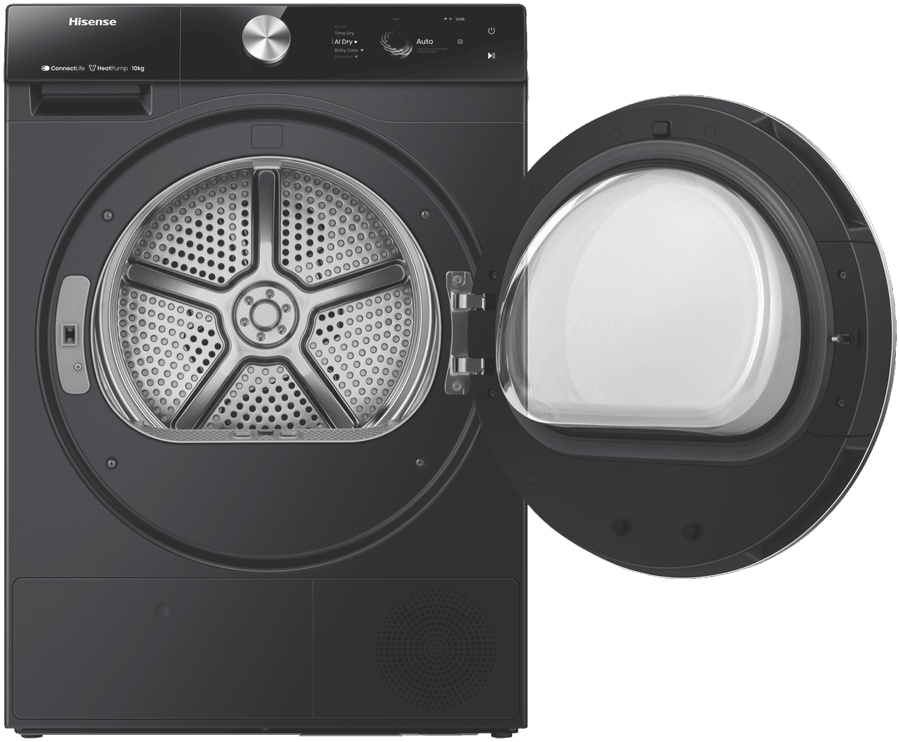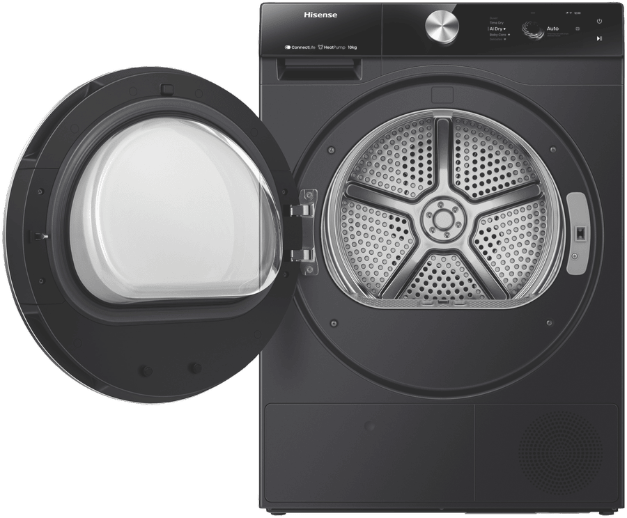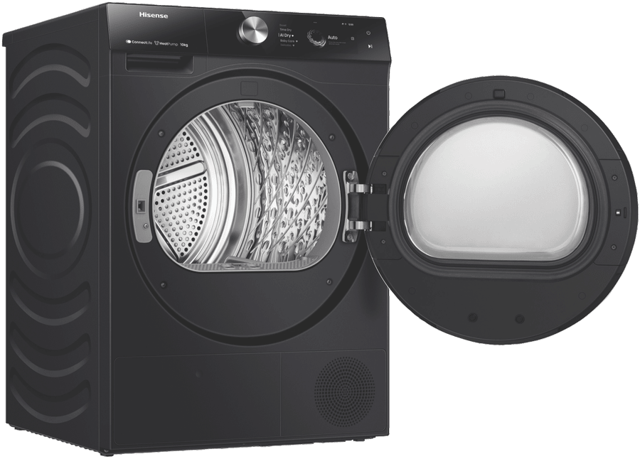 This Hisense Heat Pump Dryer makes laundry day a breeze with its 10kg capacity. It’s got 20 different programs to handle all your clothes, from delicates to denim. The AI Dry feature picks the best cycle for your load, while the 10-star energy rating helps keep power bills down. You can even add forgotten items mid-cycle with the pause function. Plus, it connects to your phone so you can monitor energy use and customize cycles. With a reversible door and drum light, it’s easy to use in any laundry setup. The charcoal black finish looks sleek, and it runs quietly too. Check out the HDFS10HPB model, backed by a 3-year warranty.