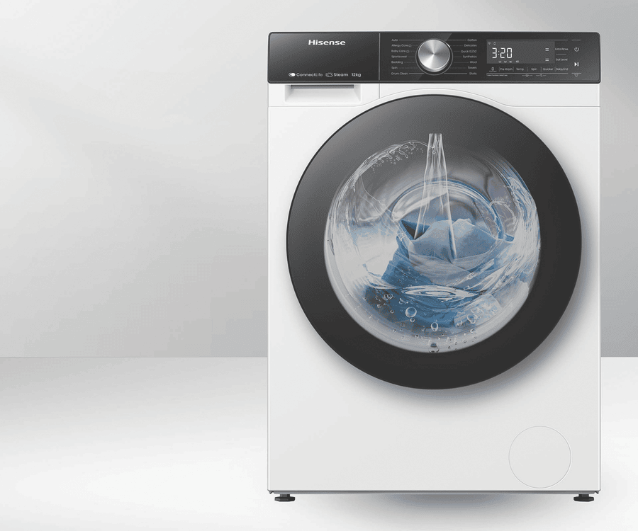 Make laundry day a breeze with Hisense’s powerful Series 5 – 12kg Washer. Designed for Aussie lifestyles, it handles large loads, saving you time and effort. Steam Function – With this function, high-temperature steam is released from the bottom of the drum, permeating your clothing. Light loads washed quick – Utilise Quick 15’ for light loads up to 1kg or Quick 30’ for light loads up to 2kg for those times when you need wash clothes quickly. Let your washer decide – With the Auto Wash function, the washer automatically senses the weight of your laundry during the wash cycle and adjusts the time accordingly to save you time and money. ConnectLife Enabled – Connect this washer to Wi-Fi through the ConnectLife app in order to access smart features like Energy Monitoring, Smart Wizard and Smart Link between an eligible Hisense Dryer.