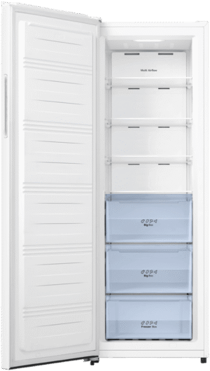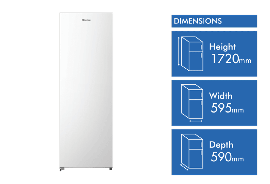 Keep your frozen food perfectly preserved with the Hisense 240L Vertical Hybrid Freezer. This spacious upright freezer features a generous 240 litre capacity and a reversible door, making it easy to open from either side based on your kitchen layout. The sleek white finish allows it to blend seamlessly into any décor. With its Total No Frost technology, you’ll never have to manually defrost it again. The Super Freeze function rapidly freezes fresh groceries to lock in nutrients, while the Super Cool mode helps chill beverages faster. The electronic touch controls offer precise temperature adjustments. Thanks to its energy efficient 3 star rating, you’ll enjoy optimized electricity usage. The manufacturer’s part number for this product is HRVF240. Bring convenient frozen storage into your home with this freezer.
