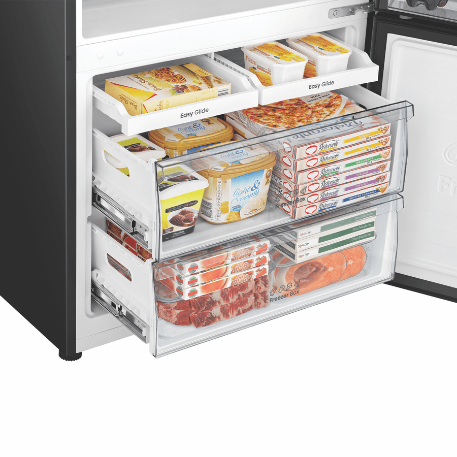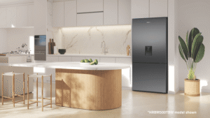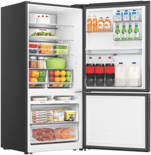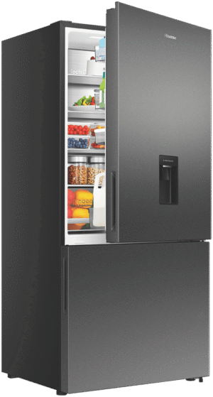 This Hisense 500L Bottom Mount Fridge keeps food fresh and organized with ease. It’s got a roomy 351L fridge and 149L freezer, perfect for big families or food lovers. The pure flat design looks sleek in any kitchen, and the dark stainless steel finish adds a touch of class. You’ll love the handy water dispenser for quick drinks, and the reversible door lets you set it up how you like. Inside, metal cooling and inverter tech work together to keep temps steady and energy bills low. The touch control panel makes adjusting settings a breeze, while the freezer’s double metal glide drawers slide out smoothly. Plus, it’s frost-free, so no more messy defrosting. This fridge fits nicely in most kitchens and comes with a solid 3-year warranty. The model number is HRBM500TBW.