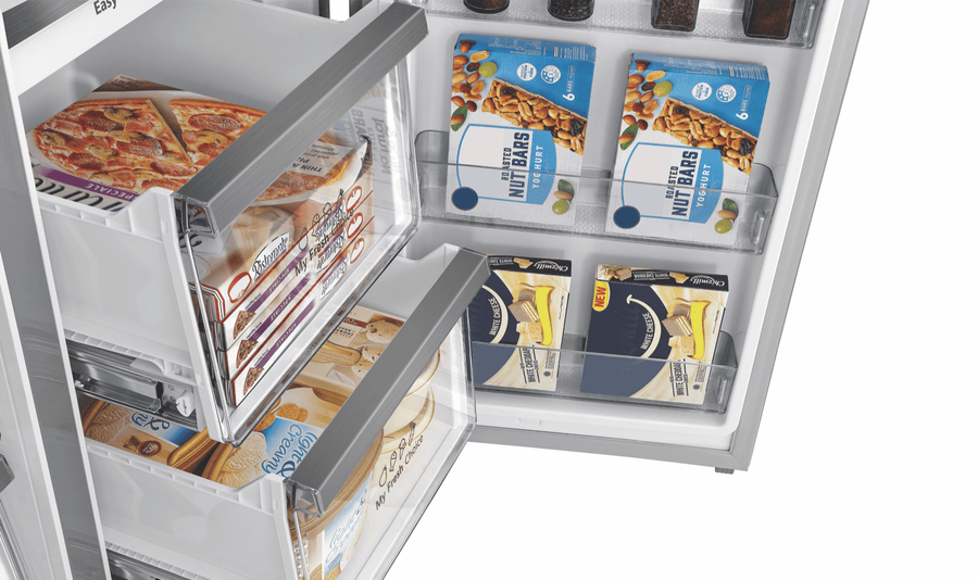 - Adjustable shelves, metal glide drawers In freezer,