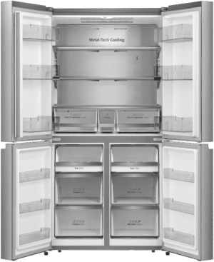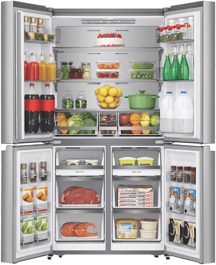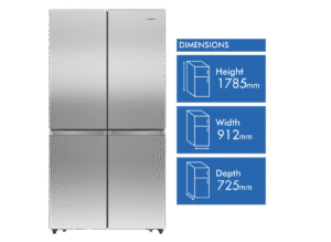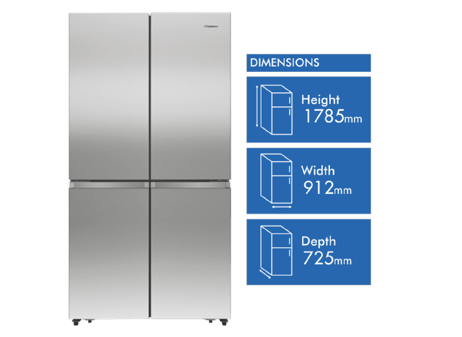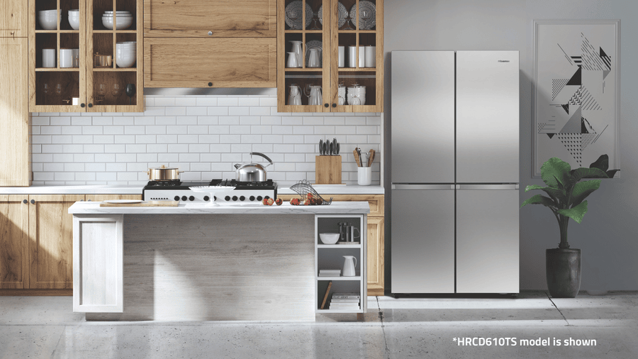 Bring stylish storage and cooling convenience to your kitchen with the Hisense 609L French Door Refrigerator. This spacious French door fridge provides ample 393L refrigerator capacity and 95L freezer capacity within its premium flat door stainless steel design, keeping your fresh and frozen favorites organized. Adjustable shelves, metal glide drawers and a convertible zone offer flexible storage options. Triple zone cooling and inverter technology maintain optimal temperatures and energy efficiency. With its mark resistant stainless steel finish, this refrigerator adds modern appeal. The My Fresh Choice zone gives you the flexibility to use the bottom compartment as either a crisper or freezer, customizing your storage. Prepare family meals with ease thanks to the spacious storage capacity of this 609L French Door fridge. The manufacturer’s part number for this product is HRCD610TS. Explore the storage and cooling potential of this Hisense refrigerator for your home today.