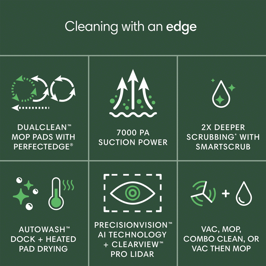 - Pet friendly with POOP Detect and DualClean mop pads
