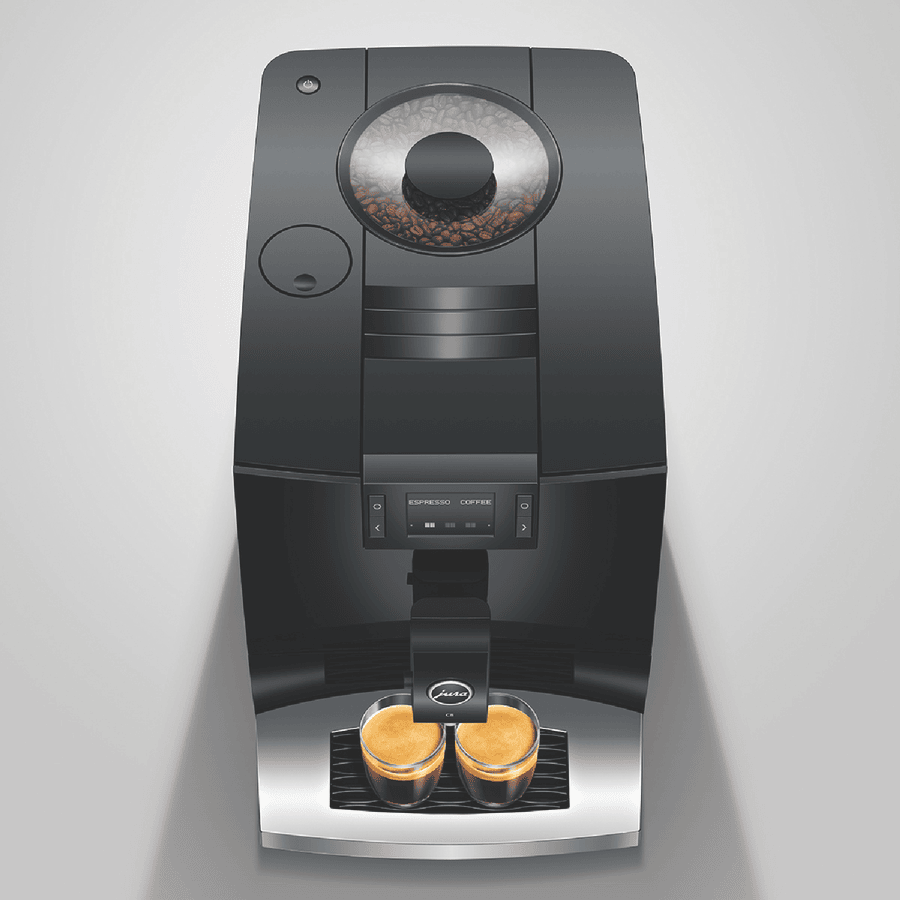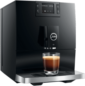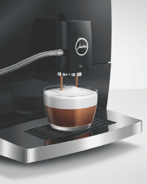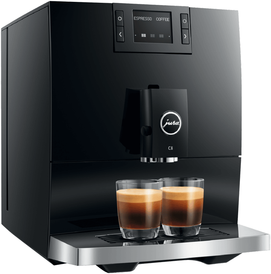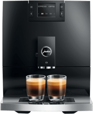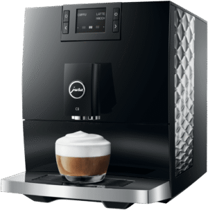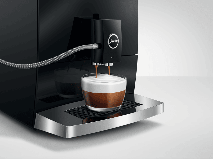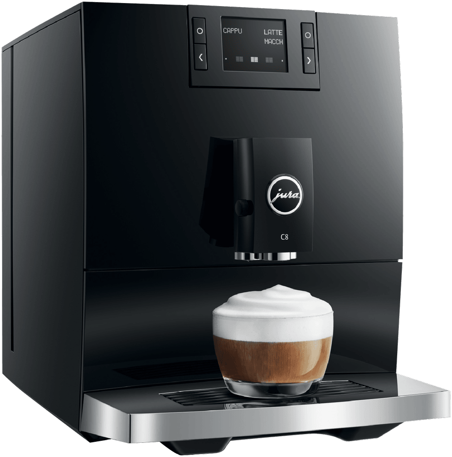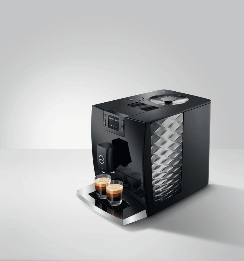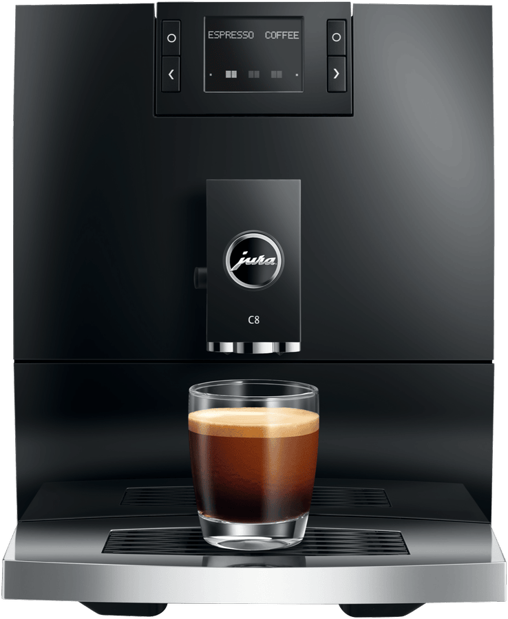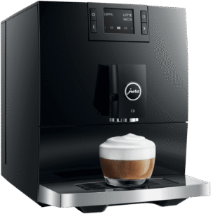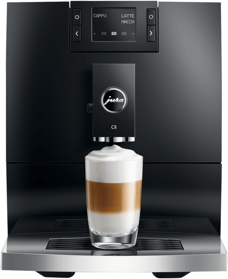 Make barista-quality coffee at home with this Jura C8 automatic coffee machine. Its powerful 15 bar pump and built-in grinder transform fresh beans into six specialty drinks including espresso, cappuccino and latte macchiato. The 1.6 litre water tank and 200g bean container let you brew multiple cups without constant refilling, while the thermoblock heating system ensures your coffee is always the perfect temperature. The intuitive touchscreen makes selecting your perfect brew simple, and you can even control it remotely using the Jura app. Includes energy-saving auto shut-off and a 2-year warranty. Model 15690.