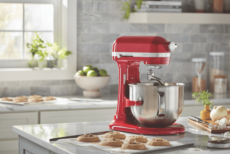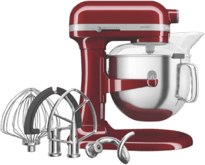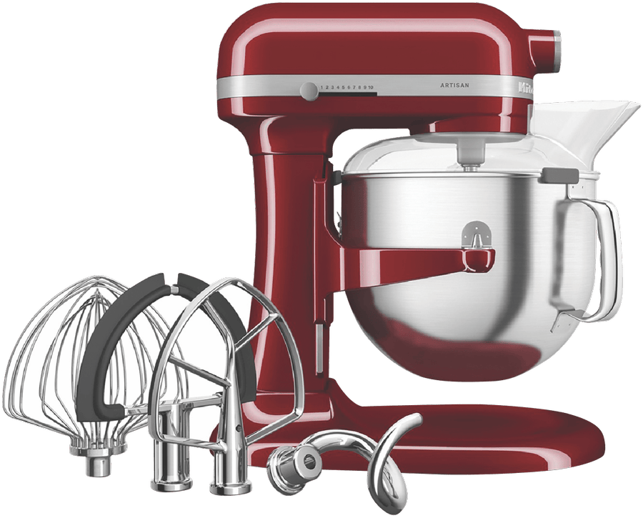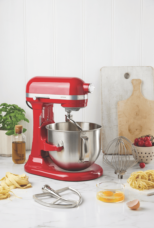 With its iconic Empire Red finish, the KitchenAid 6.6L Bowl Lift Stand Mixer brings power and style to your countertop. This heavy-duty mixer features a 375-watt motor and 11 speeds, including settings for kneading, mixing, and shredding, making it easy to prepare anything from bread dough to whipped cream. The large 6.6L stainless steel bowl provides ample room for mixing multiple batches or large quantities. For stability when mixing heavy ingredients, it has a unique 3-point bowl locking system and stainless steel construction on the bowl and attachments. With a soft start feature for smooth acceleration and the power to thoroughly mix even thick cookie dough or stiff bread dough, this mixer will be your kitchen’s MVP. The manufacturer’s part number for this product is 5KSM70SHXAER. Bring reliable mixing power and timeless style to your kitchen with the KitchenAid 6.6L Bowl Lift Stand Mixer in bold Empire Red.