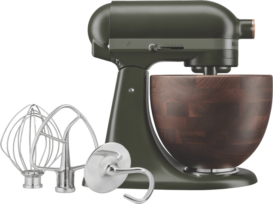 Bring a touch of elegance to your kitchen with the KitchenAid Design Series Stand Mixer in a stunning Evergreen hue. This 300-watt mixer boasts a full die cast metal construction for durability and 10 speeds to tackle any recipe. The included 4.7L walnut wooden bowl features a unique wood grain design, perfect for mixing larger batches. You’ll also get a stainless steel wire whip, flat beater, and dough hook to expand your culinary creations. Measuring 343mm high, 292mm wide, and 356mm deep, this 12.4kg mixer is built to last. The 5KSM180WSAEG comes with a 5-year manufacturer’s warranty for added peace of mind.
