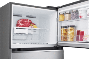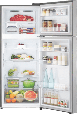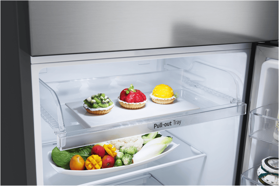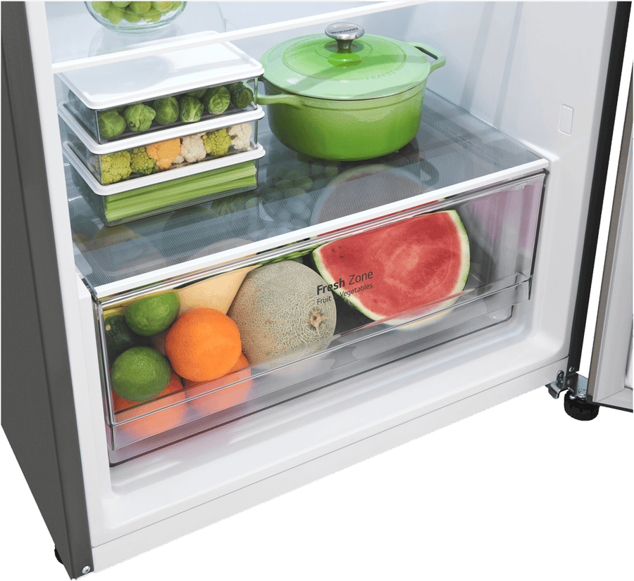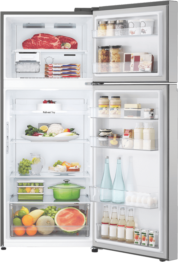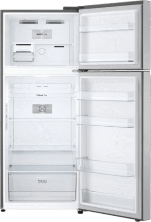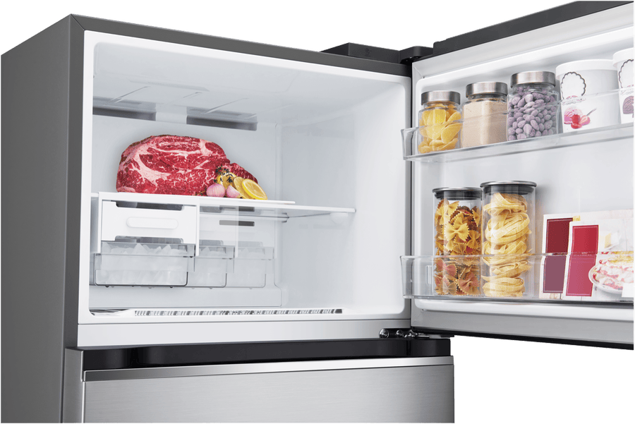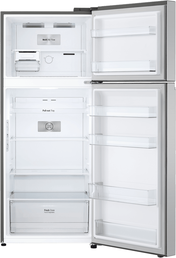 Indulge in spacious and efficient refrigeration with the sleek new 375 litre LG Top Mount Refrigerator. This top mount fridge comes equipped with a generous 375 litre total capacity, with 285 litres dedicated to the fridge compartment and 90 litres for the freezer. The elegant silver finish and hidden hinges add a touch of modern style to your kitchen. Maintain the freshness of fruits, vegetables and more with the multi-airflow system and Fresh Zone crisper drawer. The DoorCooling+ feature prevents temperature fluctuations when the doors are opened frequently. With its right hand hinge and 4 star energy rating, this refrigerator provides trusted cooling performance and energy efficiency. The two year manufacturer’s warranty grants peace of mind. LG has designed this refrigerator for uninterrupted refrigeration and easy maintenance, with a 700mm width, 1720mm height and 680mm depth. Discover how LG’s innovative refrigeration technologies can upgrade your kitchen – check out the LG 375L Top Mount Refrigerator today. The manufacturer’s part number for this product is GT-5S.