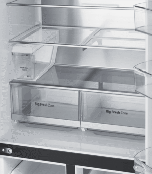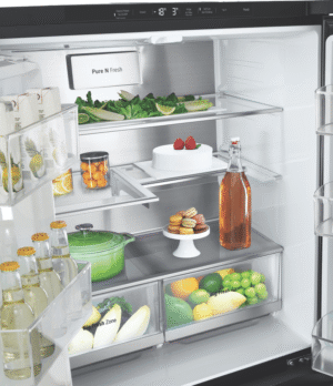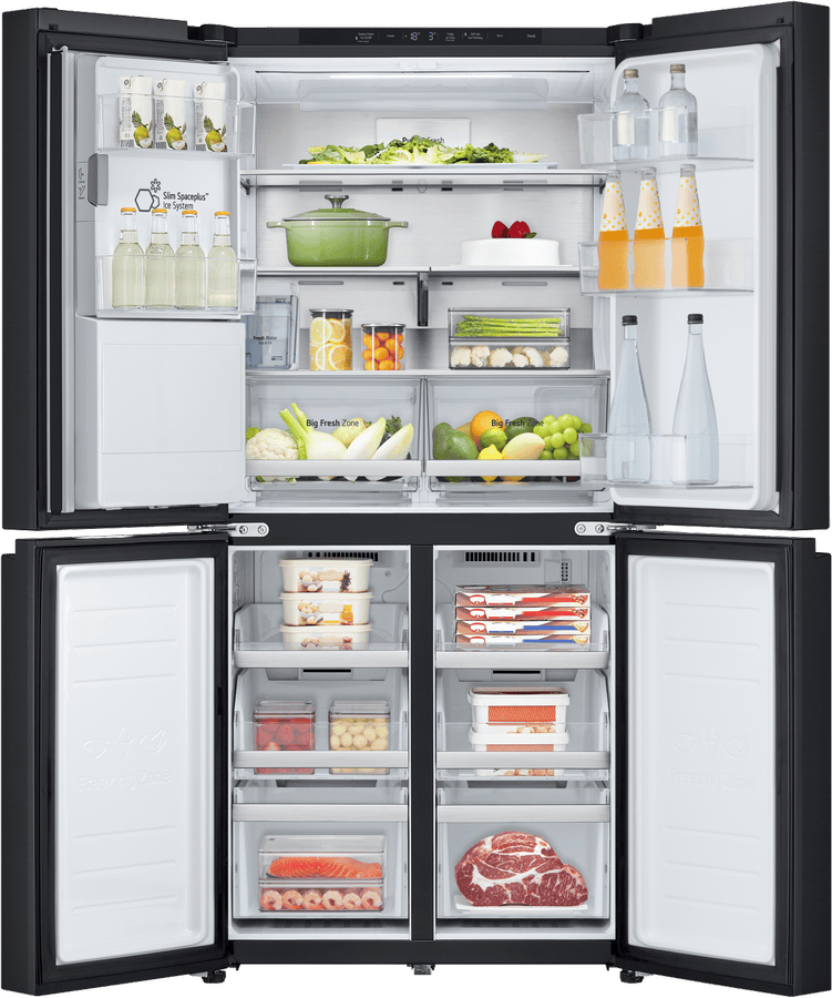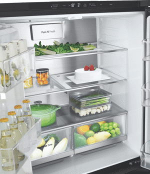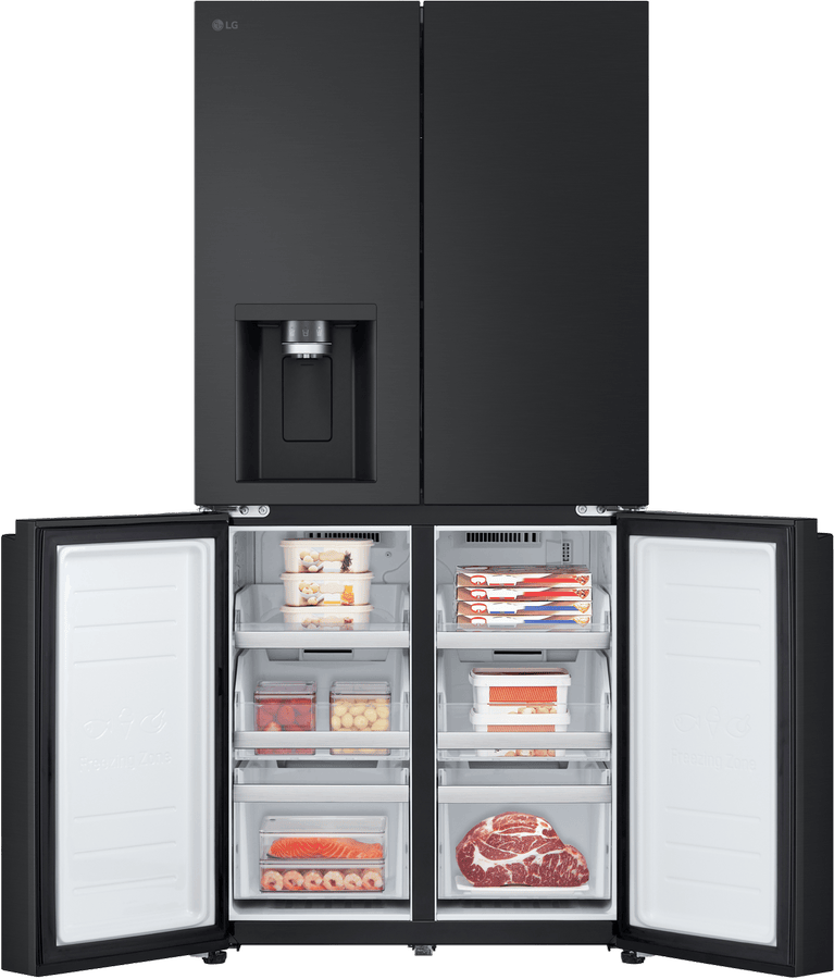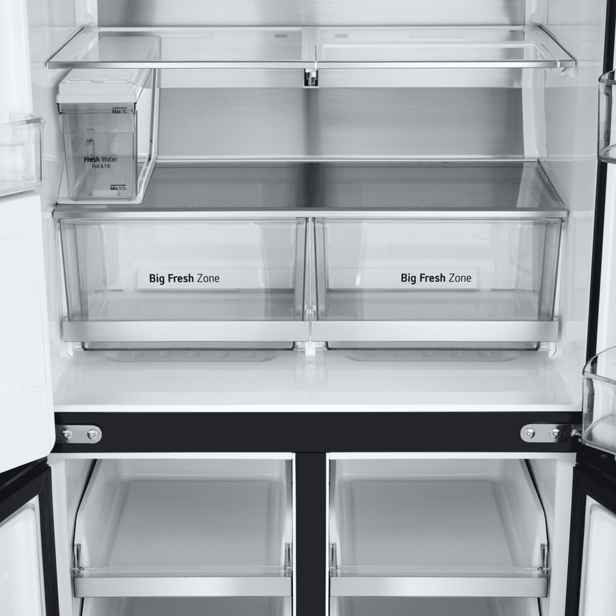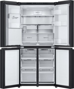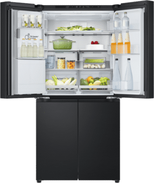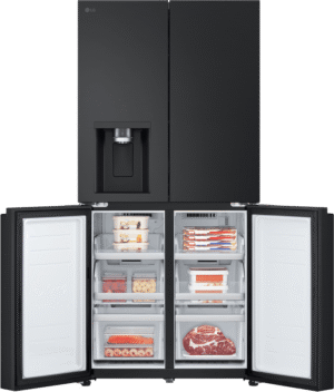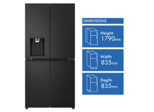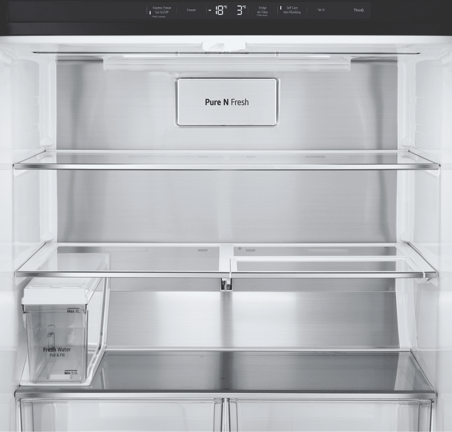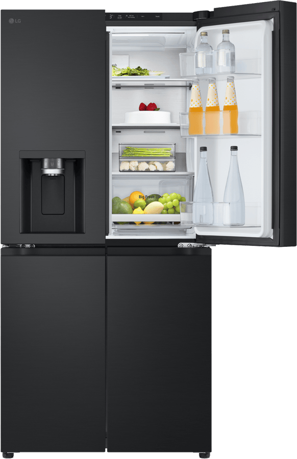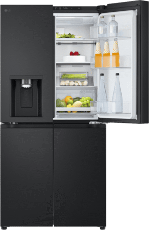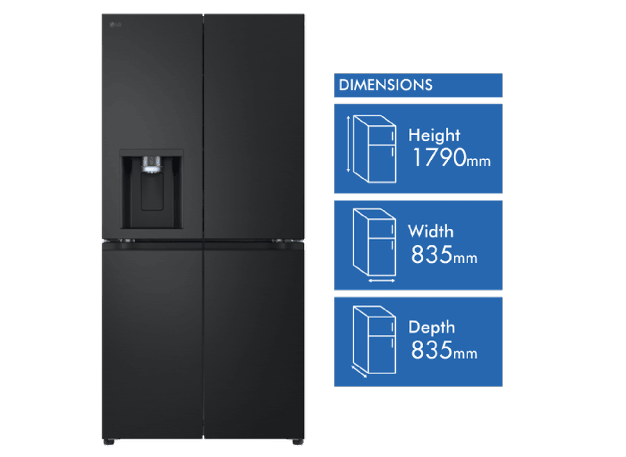 Elevate your kitchen with the sleek and stylish LG 506L French Door Refrigerator. This matte black fridge boasts a generous 506L total capacity, with 286L dedicated to fresh food storage and 209L for frozen goods. The slim 835mm width is designed to fit seamlessly into 850mm narrow alcoves, making it a perfect choice for space-conscious households. Enjoy the convenience of the ice and water dispenser, which requires no plumbing and features a UVnano Water Dispenser with a built-in UV LED light for enhanced hygiene. With a 4.5 star energy rating, this fridge is both efficient and environmentally friendly. The manufacturer’s part number for this product is GF-LN500MBL. Experience the perfect blend of style and functionality with this LG French door refrigerator, backed by a 2 year manufacturer’s warranty for your peace of mind. Upgrade your refrigerator today and transform your kitchen experience!