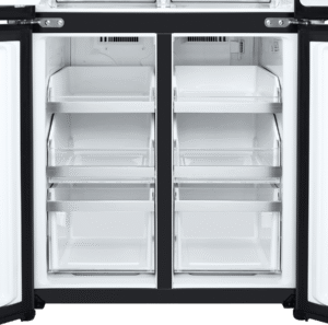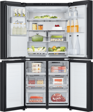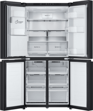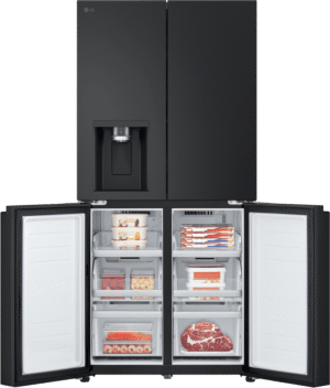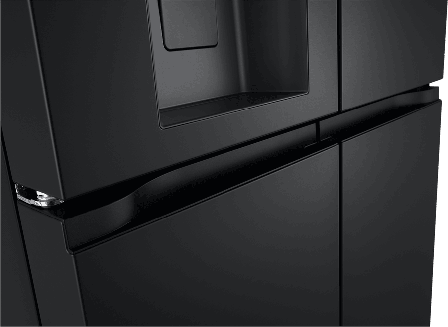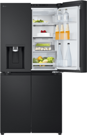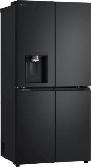 Elevate your kitchen with the stylish and spacious LG 506L French Door Refrigerator. Boasting a sleek matte black finish, this fridge offers an impressive 506L total capacity, with 286L dedicated to fresh food storage and 209L for frozen goods. The convenient French door design provides easy access to your favourite ingredients, while the slim SpacePlus ice system ensures you always have plenty of ice on hand without compromising valuable shelf space. Enjoy chilled, filtered water and ice at the touch of a button with the innovative UVnano water dispenser, which uses UV LED light to help maintain the dispenser’s hygiene. The LG ThinQ app allows you to control and monitor your fridge remotely, while the Smart Inverter Compressor ensures optimal performance and energy efficiency, earning this refrigerator a 4.5-star energy rating. Designed to fit seamlessly into an 850mm cavity, this fridge measures 835mm wide, 1790mm high, and 735mm deep. The manufacturer’s part number for this product is GF-L500MBL. Experience the perfect blend of style and functionality with the LG 506L French Door Refrigerator in your home.