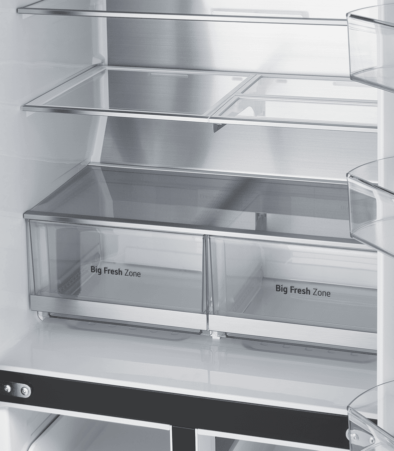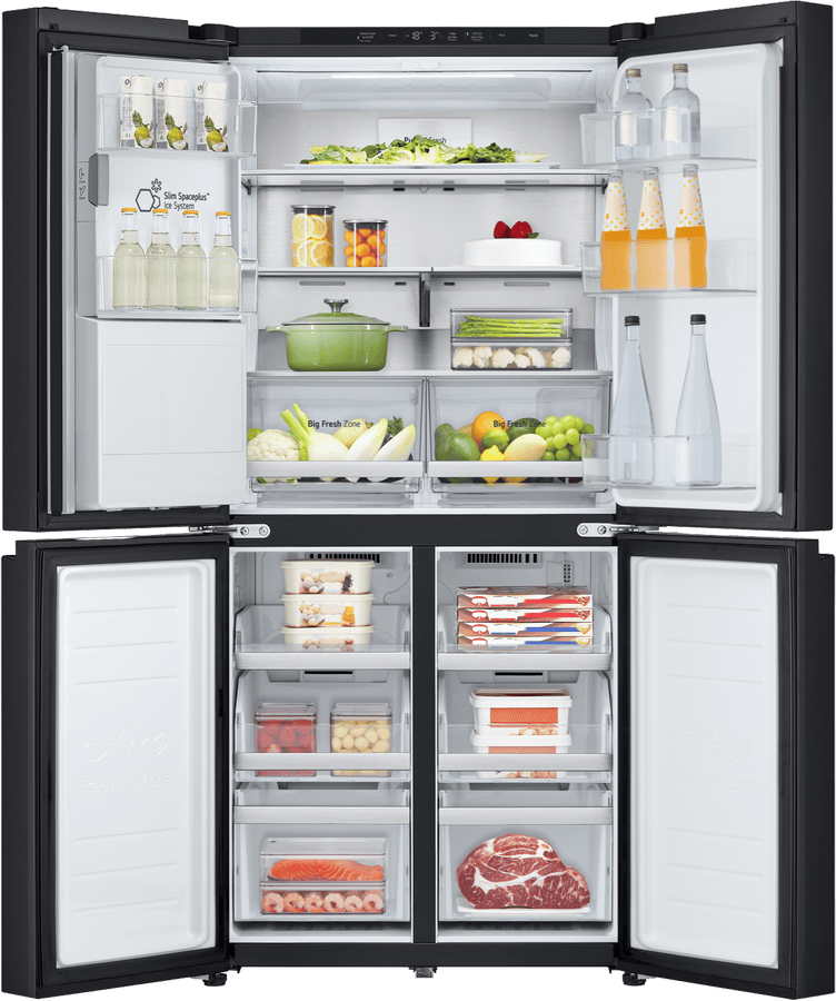 - Dual French doors, Slim Spaceplus Ice System, LG ThinQ