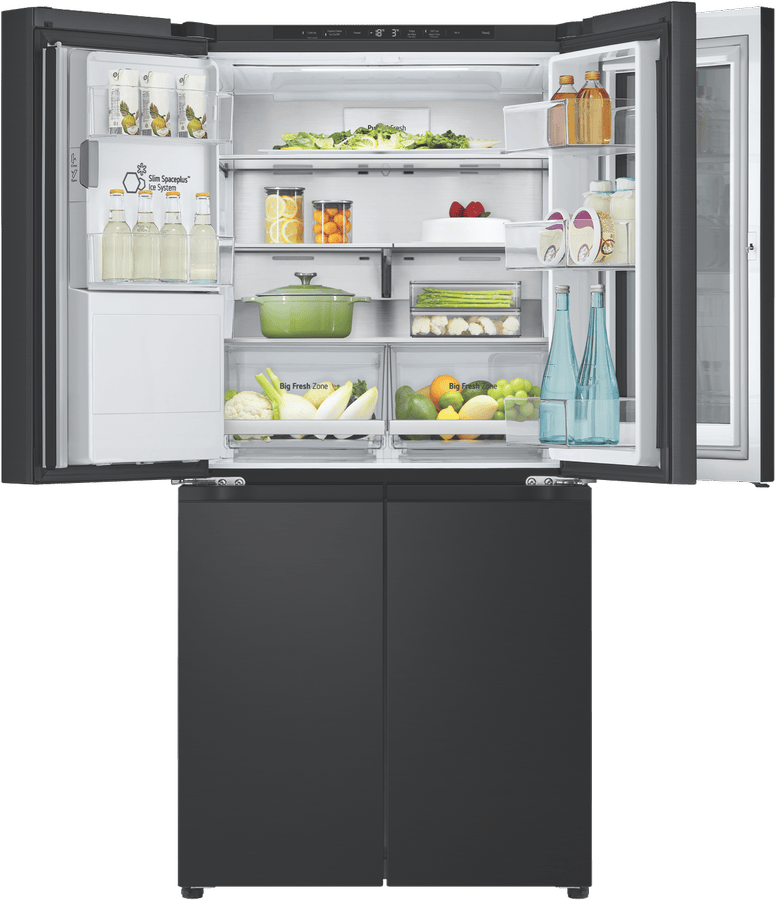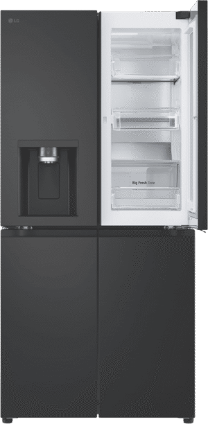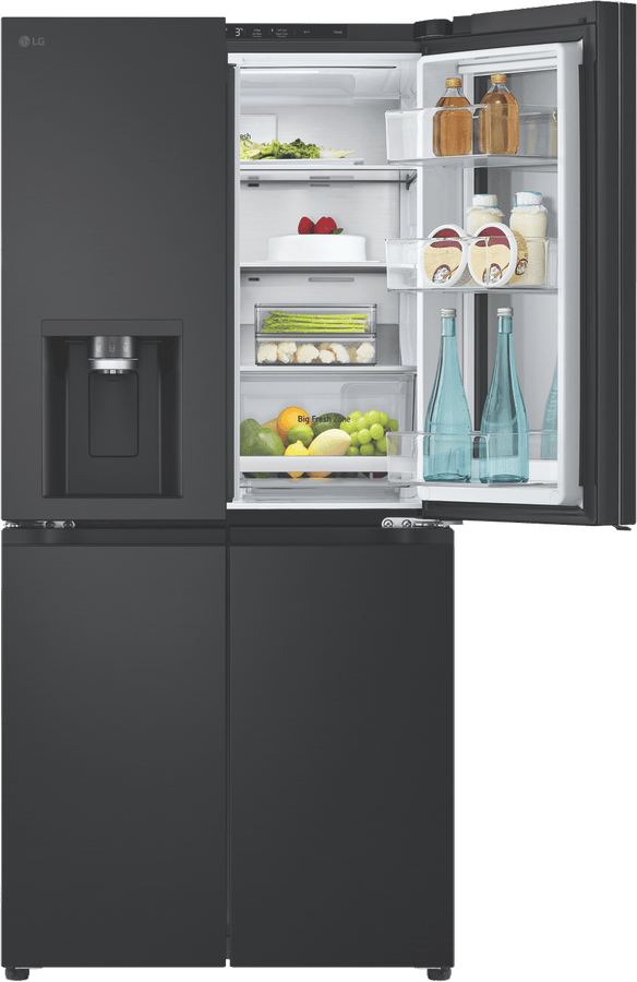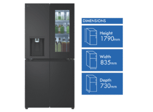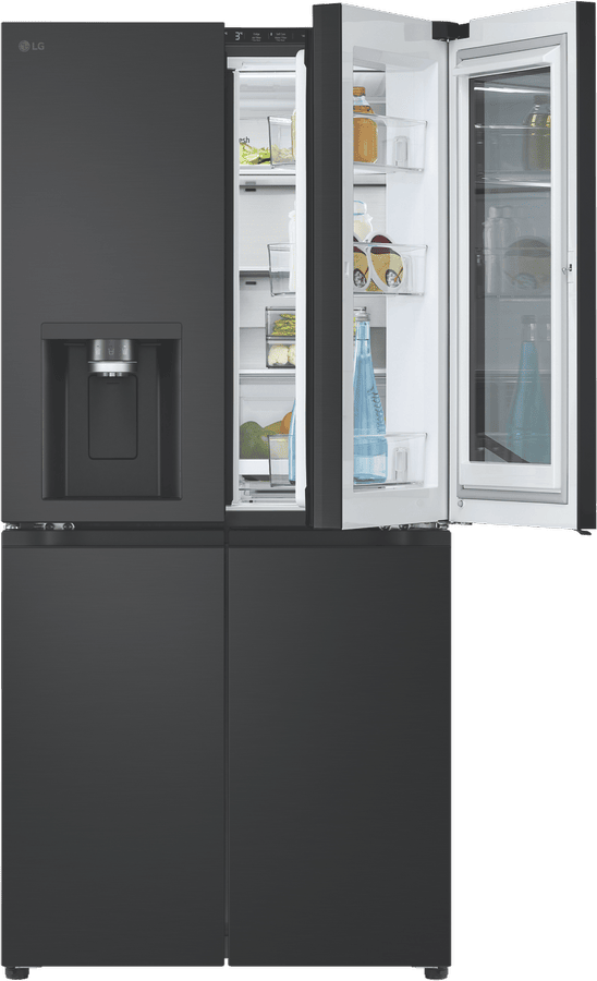 Get ready to upgrade your kitchen with the sleek, stylish LG 508L InstaView French Door Refrigerator in elegant black. With generous 508 litre total capacity and impressive 288 litre fridge capacity, this family-sized refrigerator provides ample fresh food storage to satisfy even large households. The dedicated 209 litre freezer section ensures you’ll always have space on hand for frozen foods. Innovative InstaView door-in-door technology gives you easy access to frequently used items without letting cold air escape. The integrated LCD panel lets you see inside the fridge without opening the door. Craft ice spherical ice cubes from the built-in ice maker add a touch of sophistication to everyday drinks. The Pure N Fresh filtration system eliminates bacteria and reduces odours for fresher air and water. Surround Cooling uses vents to evenly maintain optimal temperatures throughout the cavity. The UVnano water dispenser provides purified water on demand. With a contemporary matte black finish and sleek stainless steel accents, this fridge adds modern style to your kitchen. Backed by LG’s 2 year warranty for peace of mind.