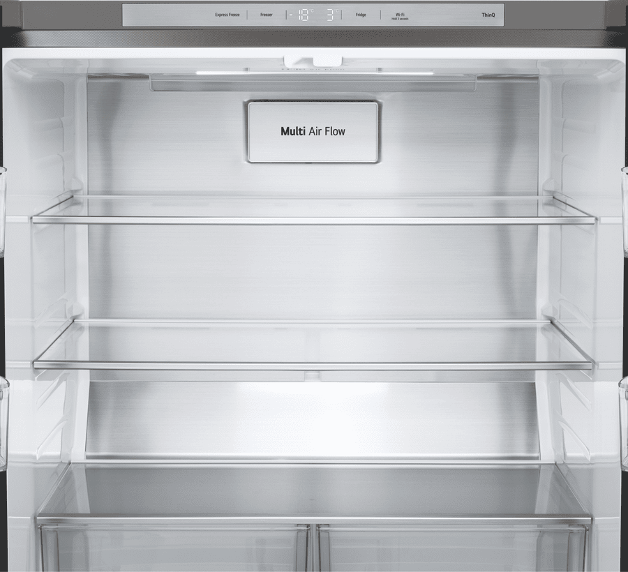 - Multi Air Flow, LG ThinQ connectivity, digital sensors, door open alarm,