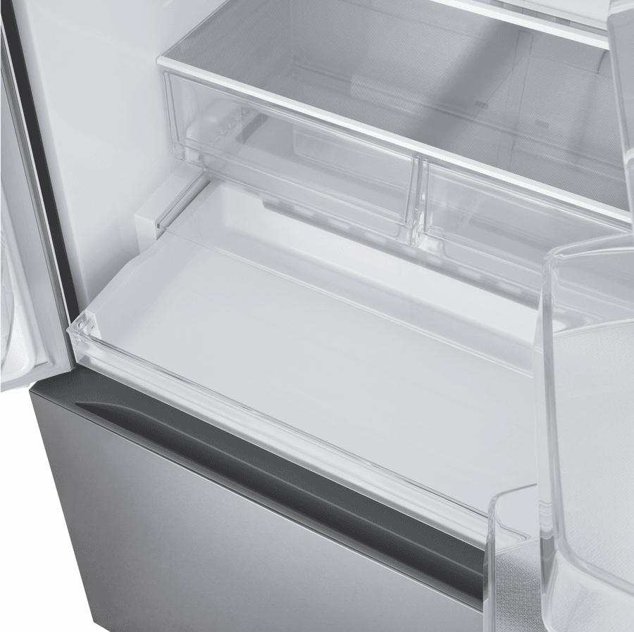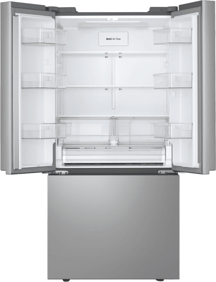 This 589L French door refrigerator gives you plenty of space for all your fresh and frozen food, with a generous 402L fridge section and 187L freezer capacity. The Multi Air Flow Cooling system keeps everything at just the right temperature, while the 3D Freezer Drawer and Express Freeze function make organizing and quickly freezing items a breeze. With smart features like ThinQ WiFi compatibility and Smart Diagnosis, you can monitor and troubleshoot your fridge from your phone. The internal LED control panel makes adjusting settings simple, and the door alarm helps prevent food waste. Six door baskets and two Fresh Zones give you flexible storage options for all your groceries. This silver stainless steel fridge comes with a 3.5 star energy rating and dual door hinges for convenient access. Backed by a 2 year warranty, the LG GF-B589PLE is a practical addition to any modern kitchen.