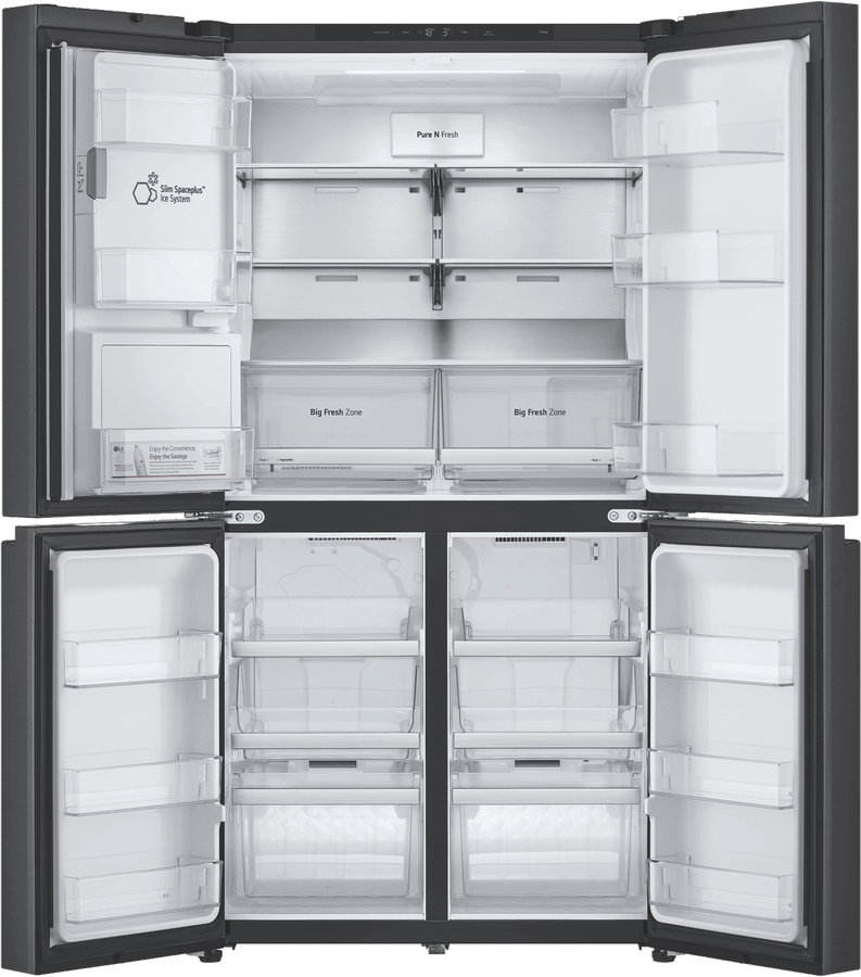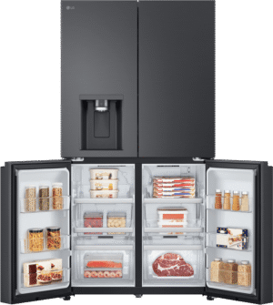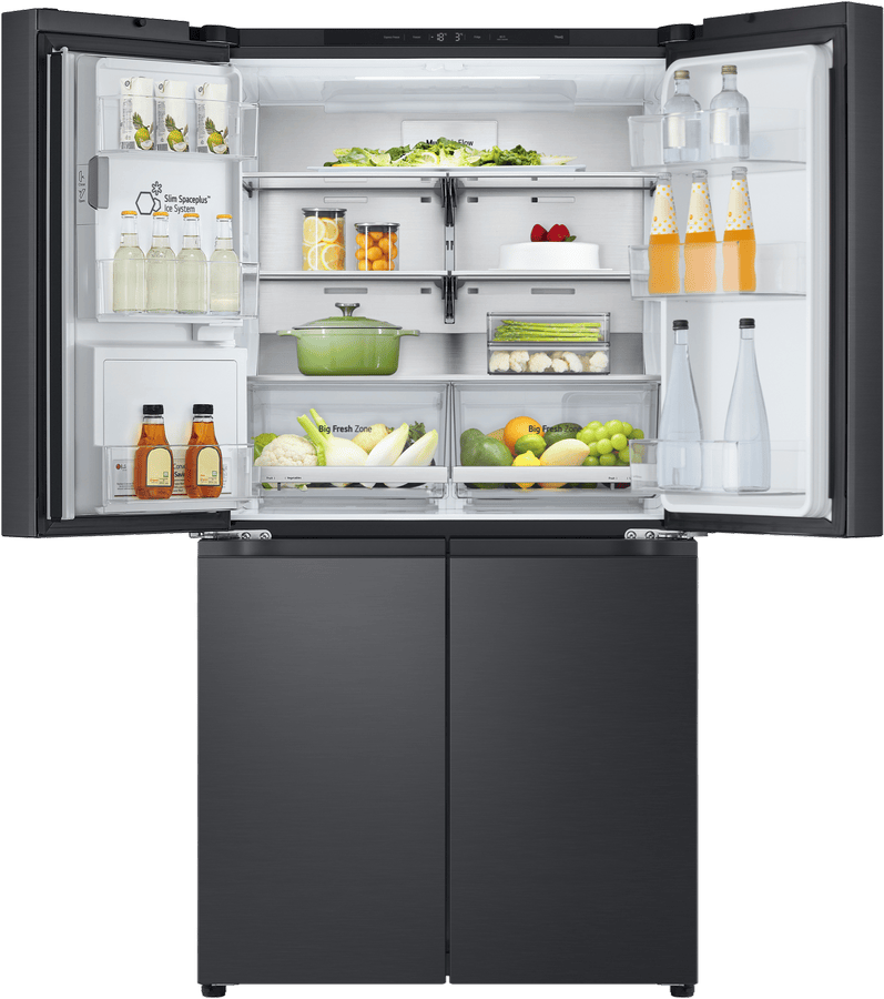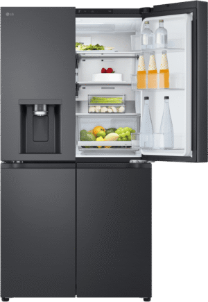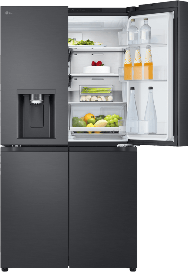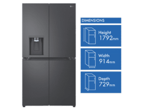 Step up your kitchen with the sleek, spacious LG 637L French Door Refrigerator. This stylish black fridge adds a touch of modern elegance while providing ample fresh food storage for the whole family. The generous 637 litre total capacity includes a large 363 litre fridge and 261 litre freezer, letting you stock up on everything from fresh produce to frozen foods. The convenient French door design gives you easy access to both fridge and freezer sections. Inside, features like the slim in-door ice maker and UV Nano water dispenser offer chilled refreshment on demand. Multi Air Flow and an advanced Inverter Linear Compressor work together to maintain optimal humidity and temperature control so food stays fresher for longer. This energy efficient model is rated an impressive 3.5 stars. With the added convenience of WiFi connectivity and LG’s smart diagnosis feature, you can control and monitor your fridge from anywhere. Bring home the convenience and style of the LG 637L French Door Fridge today. The manufacturer’s part number for this product is GF-L700MBL.