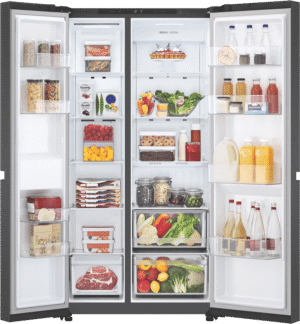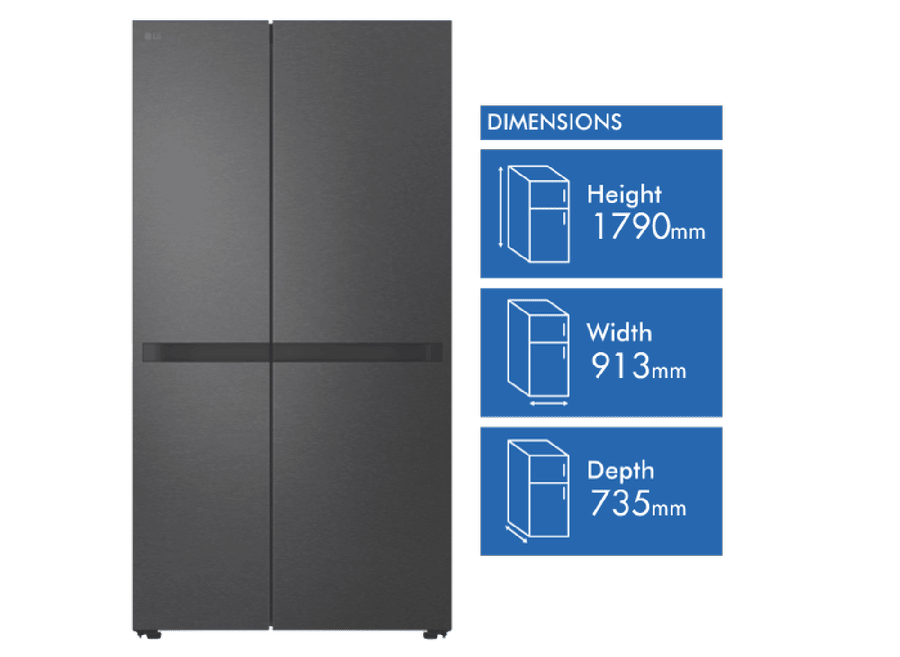 Bring home the LG 664L Side By Side Refrigerator and enjoy ample storage space for all your fresh and frozen favorites. With a sleek matte black finish, this fridge effortlessly blends style and functionality. The 423L fridge capacity and 241L freezer provide plenty of room to keep your groceries organized. You’ll love the smart inverter compressor, multi air flow system, and express freeze feature that help maintain optimal freshness. Plus, the door alarm and internal LED control add extra convenience to your daily routine. Enjoy greater energy efficiency with its 5-star rating. The GS-B599MBL comes with a 2-year manufacturer’s warranty for your peace of mind.