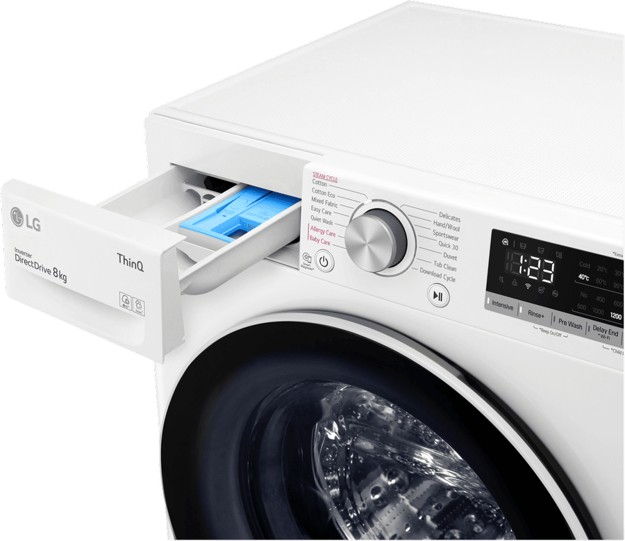 - Allergy Care cycle with steam, delay start, pre wash program,