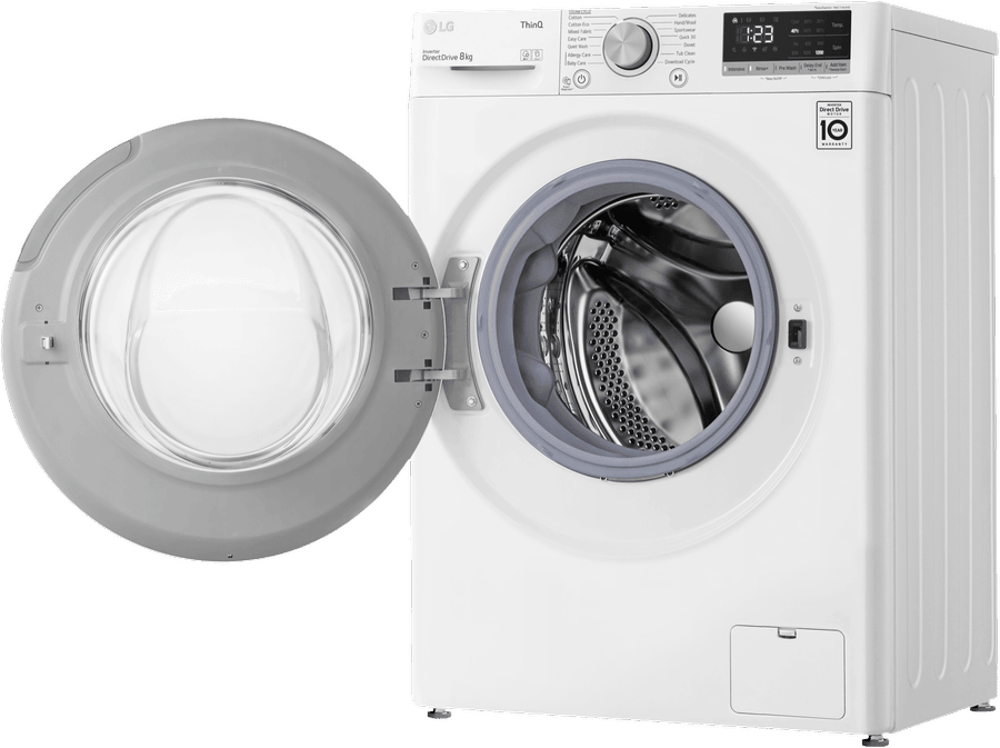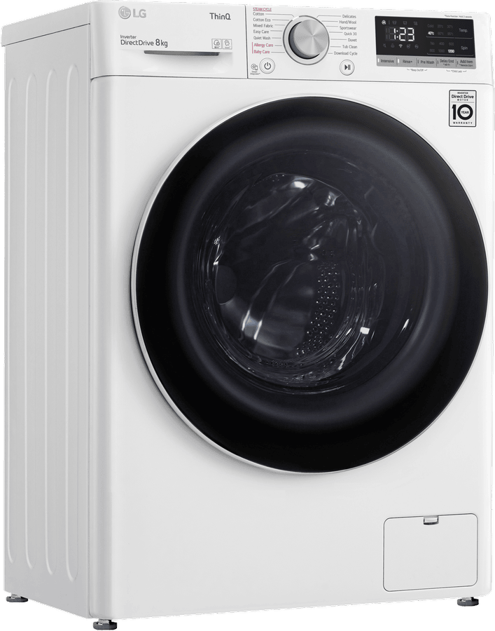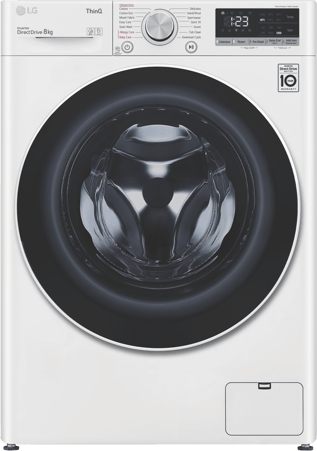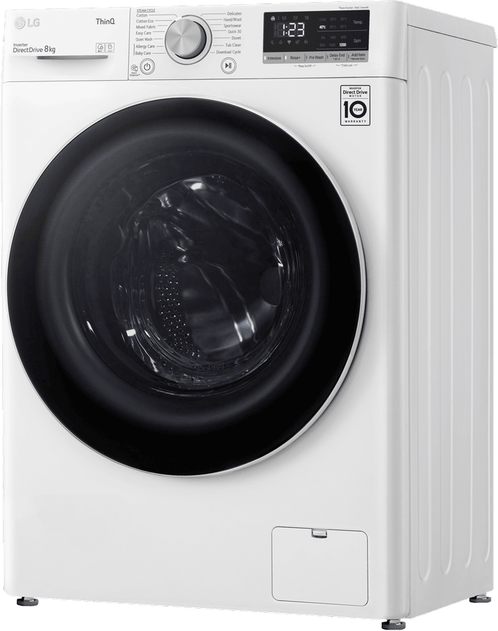 Transform your laundry experience with the LG 8kg Front Load Washer. This sleek white washing machine delivers powerful cleaning for all your fabrics while using less water and energy. With an impressive 4.5 star energy rating and 4 star WELS water rating, the LG washer is engineered for efficiency. The generous 8kg capacity caters to medium sized loads while the 1200rpm spin speed dries clothes faster. Choose from 11 versatile programs like Cotton, Delicates, Handwash, and Allergy Care to handle any fabric type. Innovative features such as Add Item, Pre Wash, and Delay Start provide extra convenience. LG’s smart ThinQ technology allows you to control and monitor cycles remotely. At under 600mm wide, this space-saving front loader fits into tight laundry rooms. Rest assured with LG’s 2 year warranty. Enjoy squeaky clean, fresh clothes while saving water and power with the LG 8kg Front Load Washer. The manufacturer’s part number for this product is WV5-1208W.