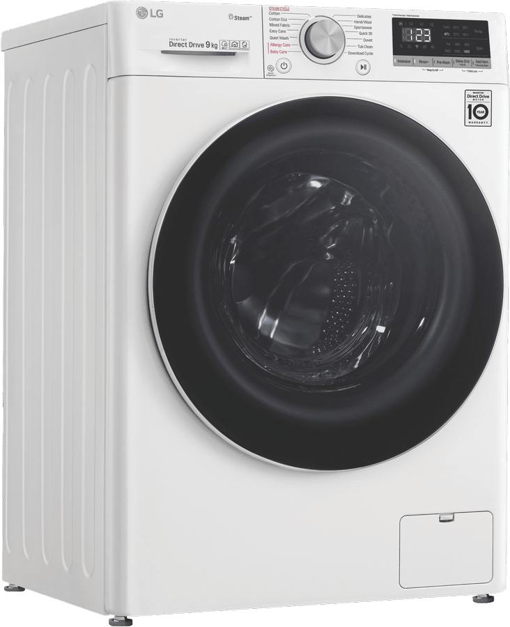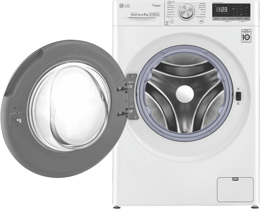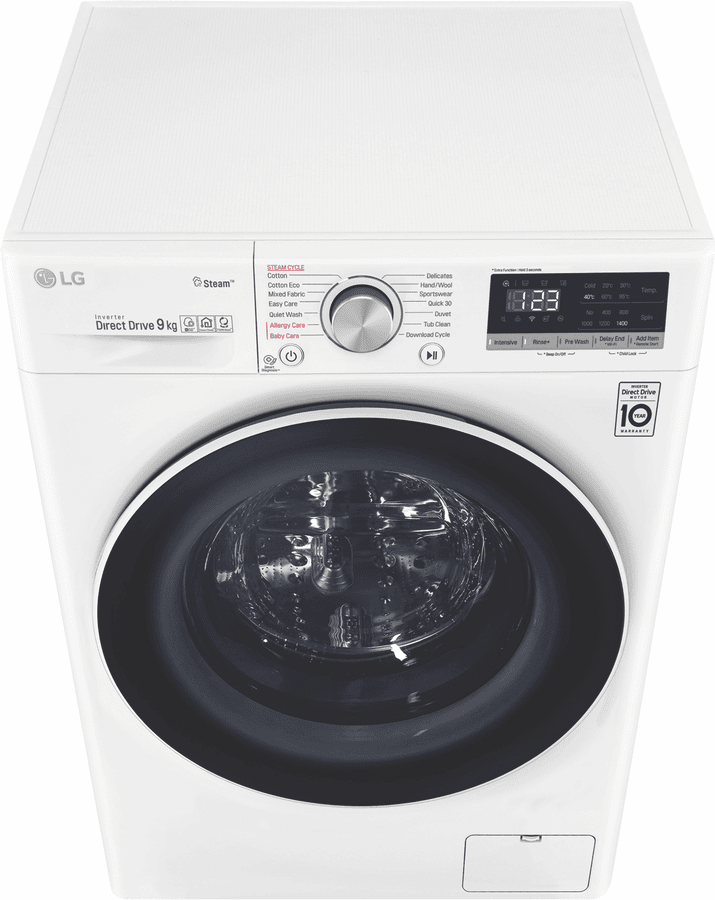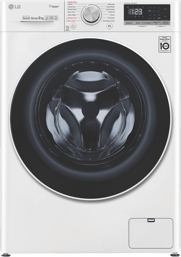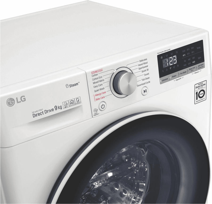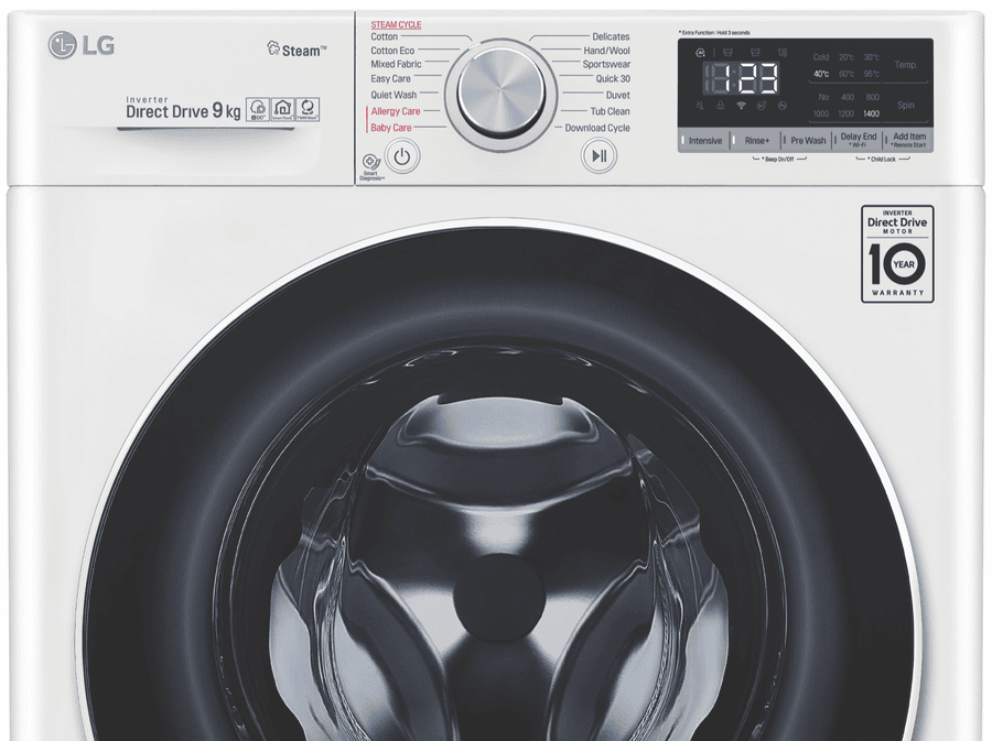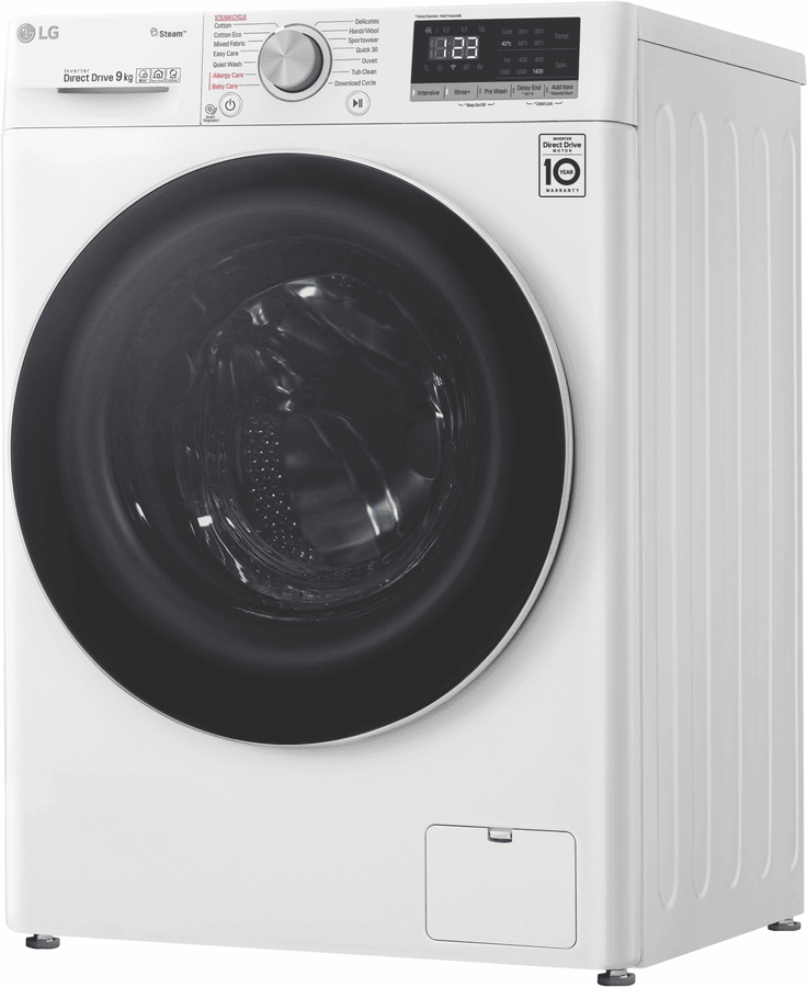This white LG 9kg Front Load Washer WV5-1409W uses an Allergy Care cycle and the Steam feature to reduce up to 99.99 percent of allergens found in clothing and bedding. For your everyday Cotton and Mixed Fabric cycles, this washer’s AI Direct Drive technology assesses the weight and fabric softness of the load and auto-activates the best wash motions for a thorough clean. With this washing machine’s Direct Drive Motor, there are less moving parts so you can put a load on without creating too much background noise. Plus, experience a new world of technology as this LG washer comes with ThinQ technology, allowing you to remotely start or monitor your wash progress. You can even add in a forgotten pair of socks after the load has started with the ‘Add Item’ option.